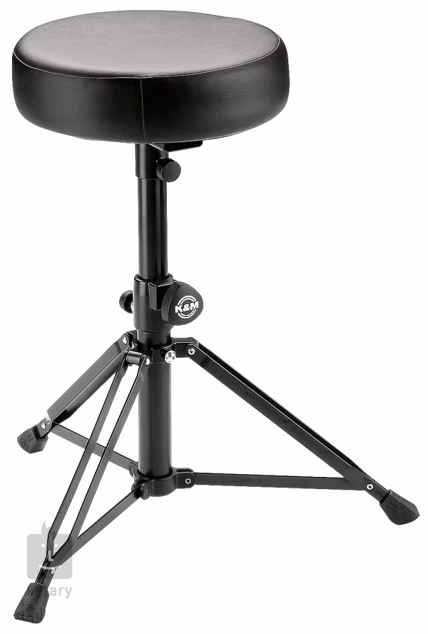 Profesionálna bubenícka stolička nemeckej značky K&M. Je vyrobený z pevnej ocele v čiernej farbe, ktorá spolu so širokou základňou zaisťuje maximálnu stabilitu. Je výškovo nastaviteľný v rozsahu 500 - 700 mm pomocou jednoduchého, ale funkčného upínacieho mechanizmu. Polstrované sedadlo potiahnuté protišmykovou imitáciou kože s priemerom 325 mm zaručuje pohodlie aj počas dlhého hrania.