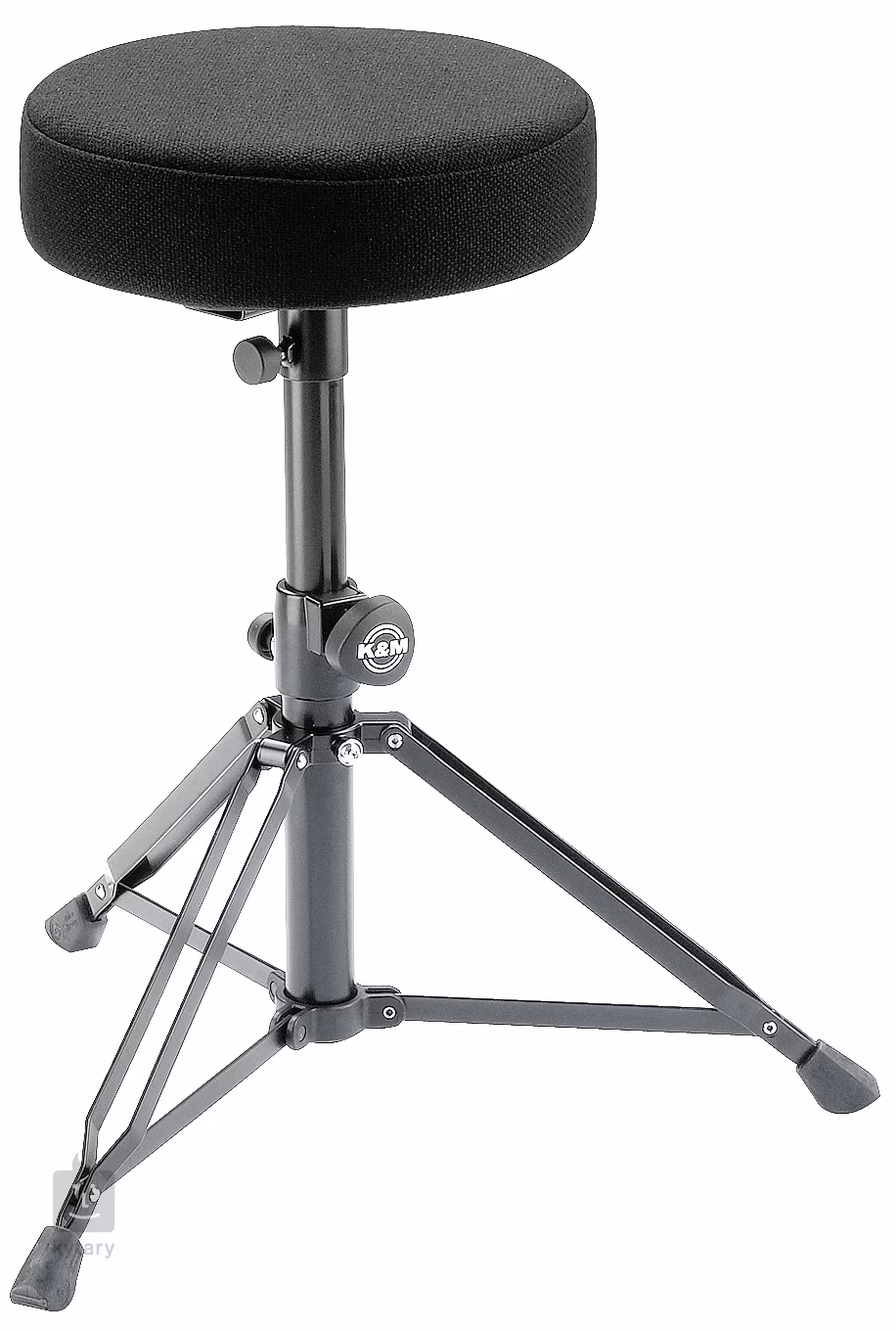 Profesionálna bubenícka stolička nemeckej značky K&M. Je vyrobená z pevnej ocele v čiernej povrchovej úprave, ktorá spolu so širokou základňou zaručuje maximálnu stabilitu. Je výškovo nastaviteľná v rozsahu 500 - 700 mm pomocou jednoduchého, ale funkčného upínacieho mechanizmu. Polstrované sedadlo potiahnuté protišmykovou imitáciou kože s priemerom 325 mm zaručuje pohodlie aj počas dlhého hrania.