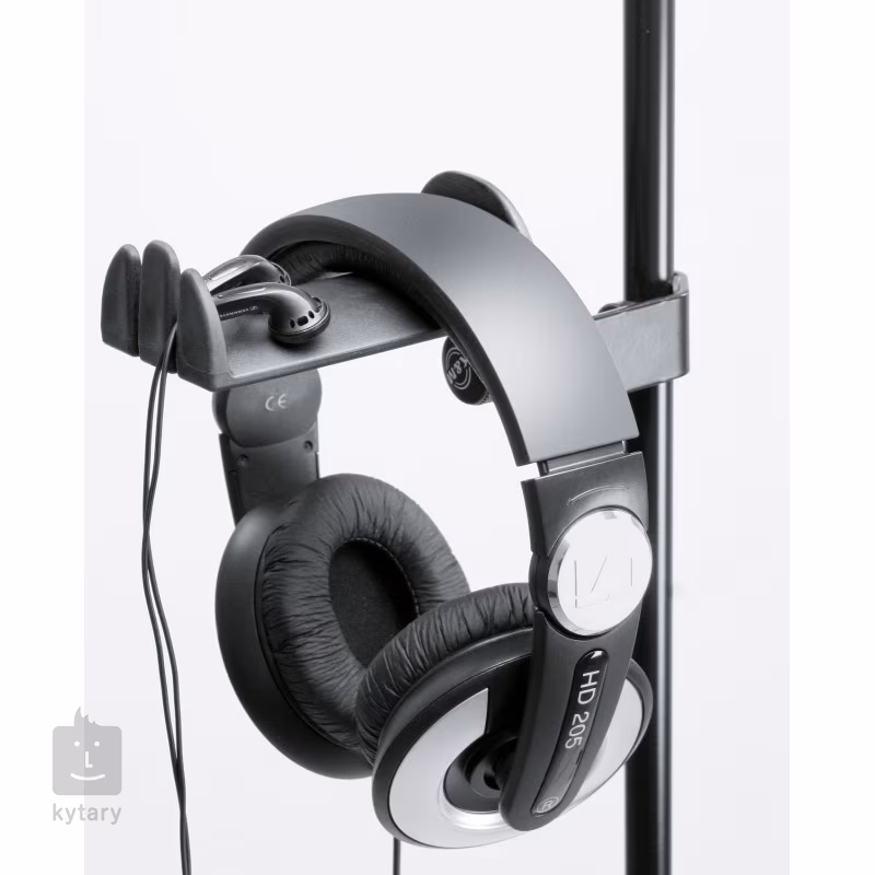 Praktický držiak na slúchadlá je vyrobený z pevnej ocele a ponúka maximálne pohodlie pre vaše slúchadlá, ktoré sú neoddeliteľnou súčasťou vybavenia každého profesionálneho a domáceho nahrávacieho štúdia. Držiak sa pomocou pevného závitu pripevní k reproduktorovému alebo mikrofónnemu stojanu s priemerom do 30 mm, do úložného priestoru s rozmermi 100 x 60 mm sa zmestia až dve štúdiové slúchadlá a na prednej strane sú výrezy pre pár slúchadiel In-Ear. Držiak možno použiť aj ako držiak mikrofónu a kábla nástroja.