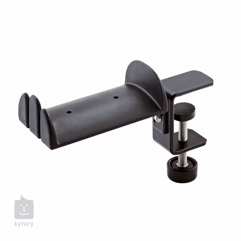 Praktický držiak na slúchadlá je vyrobený z pevnej ocele a ponúka maximálne pohodlie pre vaše slúchadlá, ktoré sú neoddeliteľnou súčasťou vybavenia každého profesionálneho a domáceho nahrávacieho štúdia. Držiak sa pripevňuje k stolu s hrúbkou do 45 mm pomocou robustnej skrutky, do úložného priestoru s rozmermi 100 x 60 mm sa zmestia až dve štúdiové slúchadlá a na prednej strane sú výrezy na pár slúchadiel In-Ear. Držiak možno použiť aj ako držiak mikrofónu a kábla nástroja.