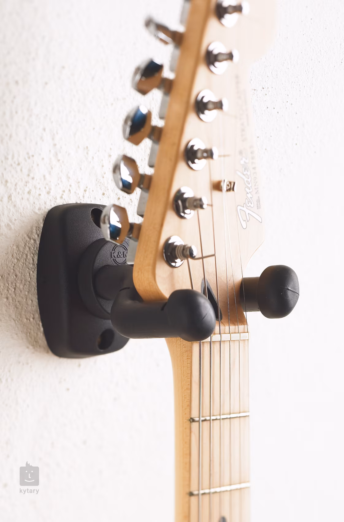 Minimalistický gitarový stojan, ktorý zaberá málo miesta na stene, ale je dostatočne pevný, aby bezpečne udržal aj ten najťažší nástroj. Gumový poťah chráni lak nástroja pred poškriabaním a dômyselne navrhnutý zámok sa uzamkne vlastnou váhou gitary, takže nehrozí jej vypadnutie. Okrem toho je držiak vďaka svojej konštrukcii vhodný aj pre nástroje s asymetrickou hlavou.