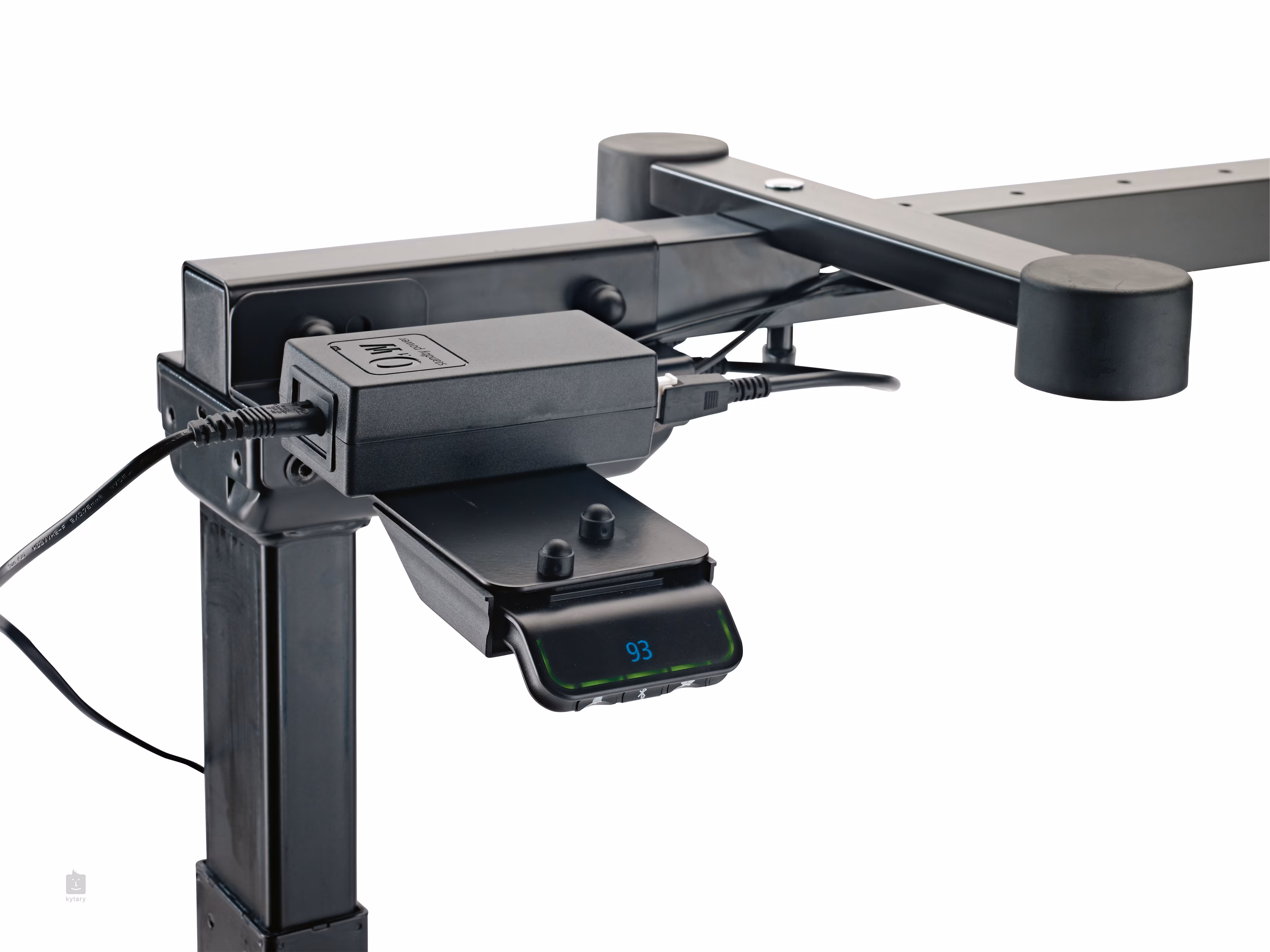 Stojan na klávesnicu, ktorý si sám nastaví výšku bez vašej fyzickej pomoci? Áno, presne to dokáže nový model K&M Omega-E. Dizajn stojana je kópiou modelu Omega 18810, vývojári ho doplnili o elektromotor, ktorý má prehľadný displej a integrovanú pamäť na nastavenie až štyroch rôznych výšok. Kľúče budete mať vždy pripravené v požadovanej výške, či už budete stáť alebo sedieť na stoličke. Do mobilného telefónu alebo tabletu si môžete stiahnuť aj aplikáciu Desk Control a pomocou technológie Bluetooth spravovať nastavenia stojana napríklad z baru alebo z druhého konca pódia. Pevná kovová konštrukcia zaisťuje maximálnu stabilitu pri hraní, stojan je vhodný pre akýkoľvek typ klávesov.