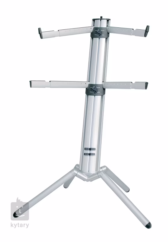 Vlajková loď klávesových stojanov Spider Pro od spoločnosti K&M, moderný a jedinečný vzhľad vylepšený skvelými používateľskými funkciami. Ľahká hliníková konštrukcia umožňuje jednoduchú prepravu medzi výrobami. Stojan má dva páry ramien na umiestnenie klávesov, nosnosť každého poschodia je 35 kg a horné poschodie umožňuje meniť sklon klávesov až do 15° pre čo najpohodlnejšie hranie. Maximálnu stabilitu stojanu zabezpečuje statív, ktorý je umiestnený vo výške a ponecháva dostatok priestoru pre pedále klávesnice. Na hornú časť stojana môžete pripevniť 3/8" alebo 5/8" závit pre držiak mikrofónu. Spider Pro je univerzálny stojan vhodný na hranie v stoji alebo v sede, ktorý je k dispozícii v troch farbách, takže dokonale doplní dizajn vašej klaviatúry. Stojan obsahuje držiaky na káble a závity na držiak mikrofónu. K stojanu je možné dokúpiť nylonové ochranné puzdro na bezpečnejšiu prepravu alebo ďalšie páry ramien na uloženie ďalších kľúčov.