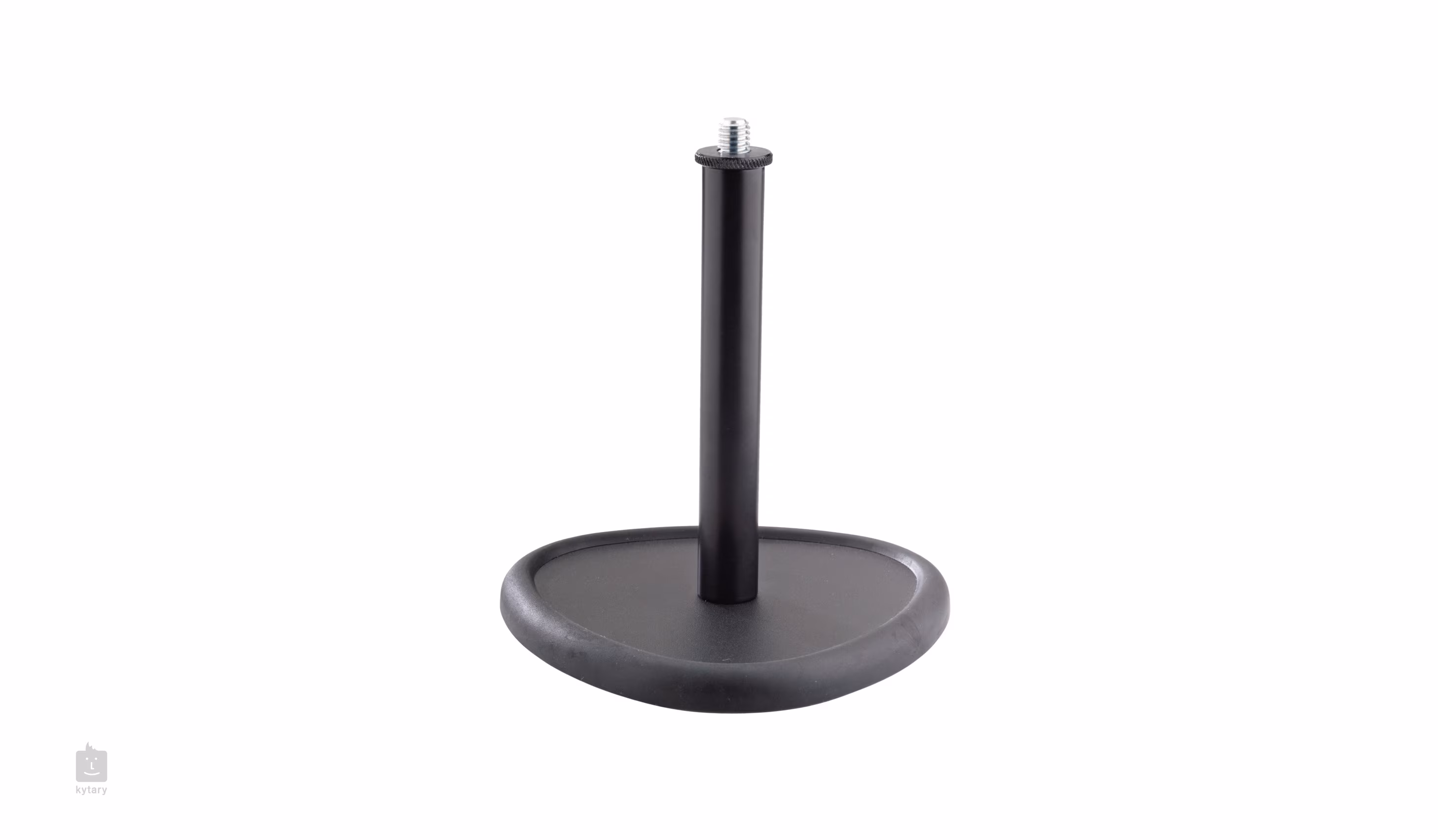 Stolový mikrofónový stojan s trojuholníkovou oceľovou základňou a gumovou vložkou na pohlcovanie nežiaducich vibrácií.