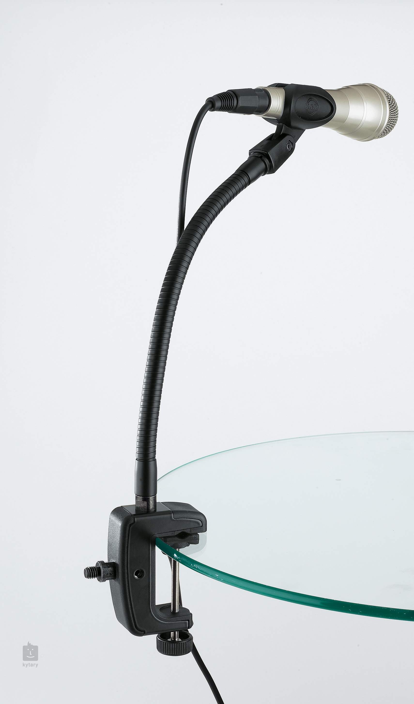 Univerzálny stolový držiak mikrofónu vhodný na pripevnenie držiaka mikrofónu alebo husieho krku. Je vyrobený z odolnej ocele a má 48 mm dlhý závit. Integrovaný závit je vhodný pre zariadenia so závitom 1/4", 3/8" alebo 5/8".
