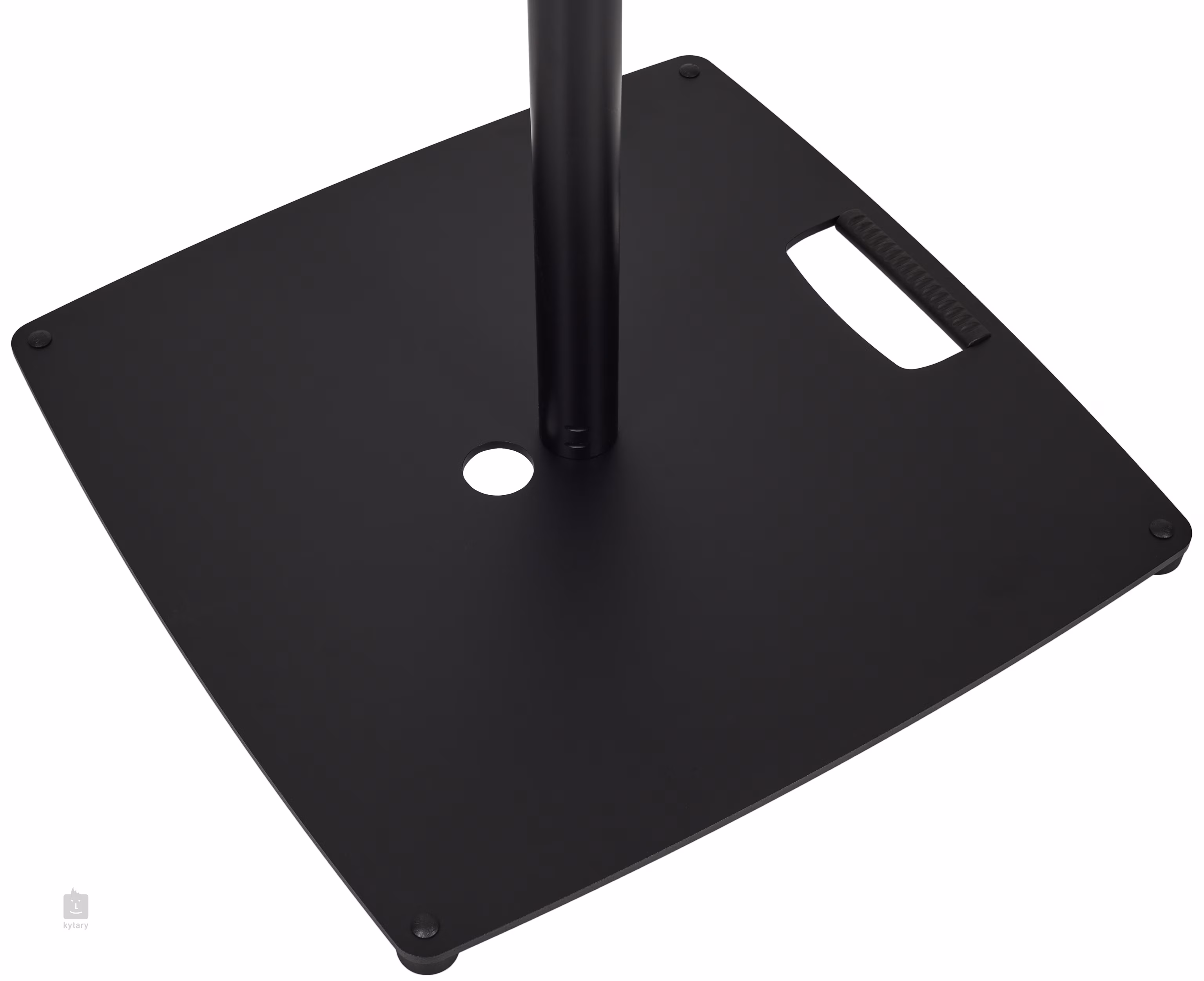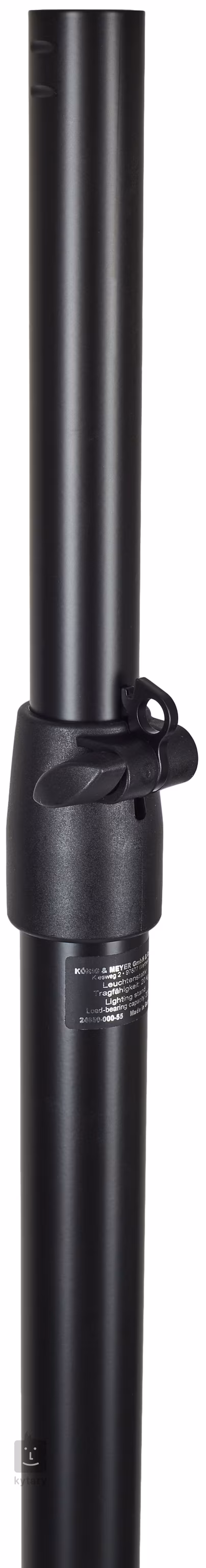 Stojan na svetlo a reproduktory König & Meyer 24650 má stabilnú oceľovú konštrukciu a vďaka plochej základni je vhodný na miesta, kde je potrebné šetriť miestom. Jeho úzka konštrukcia tiež zaručuje, že pri preprave nezaberie veľa miesta. Výška je nastaviteľná pomocou bezpečnostného háčika v piatich krokoch po 20 cm v rozsahu od 142 do 242 cm. Ponúka aj prívod kábla a rukoväť na prenášanie. Integrovaná zásuvka so závitom M10 umožňuje pripevnenie priečnej tyče alebo priame upevnenie svetiel. Maximálna nosnosť stojana pri úplnom vysunutí je 20 kg.