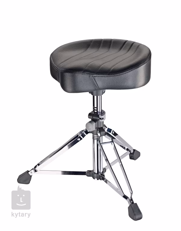 Táto profesionálna bubenícka stolička ponúka skvelú stabilitu vďaka trojnohej základni vyrobenej z najpevnejšej ocele. Samozrejme, je výškovo nastaviteľná v centimetrových krokoch, ergonomicky tvarované sedadlo je vyrobené z mäkkej a odolnej koženky a dá sa zložiť na jednoduchú prepravu. V porovnaní s bežnými stoličkami nie je potrebné nič skrutkovať, všetky nastavenia sa vykonávajú pomocou spoľahlivých upínacích pák. Gumené nožičky nielenže eliminujú šmýkanie stoličky, ale tiež znižujú vibrácie prenášané z podlahy.