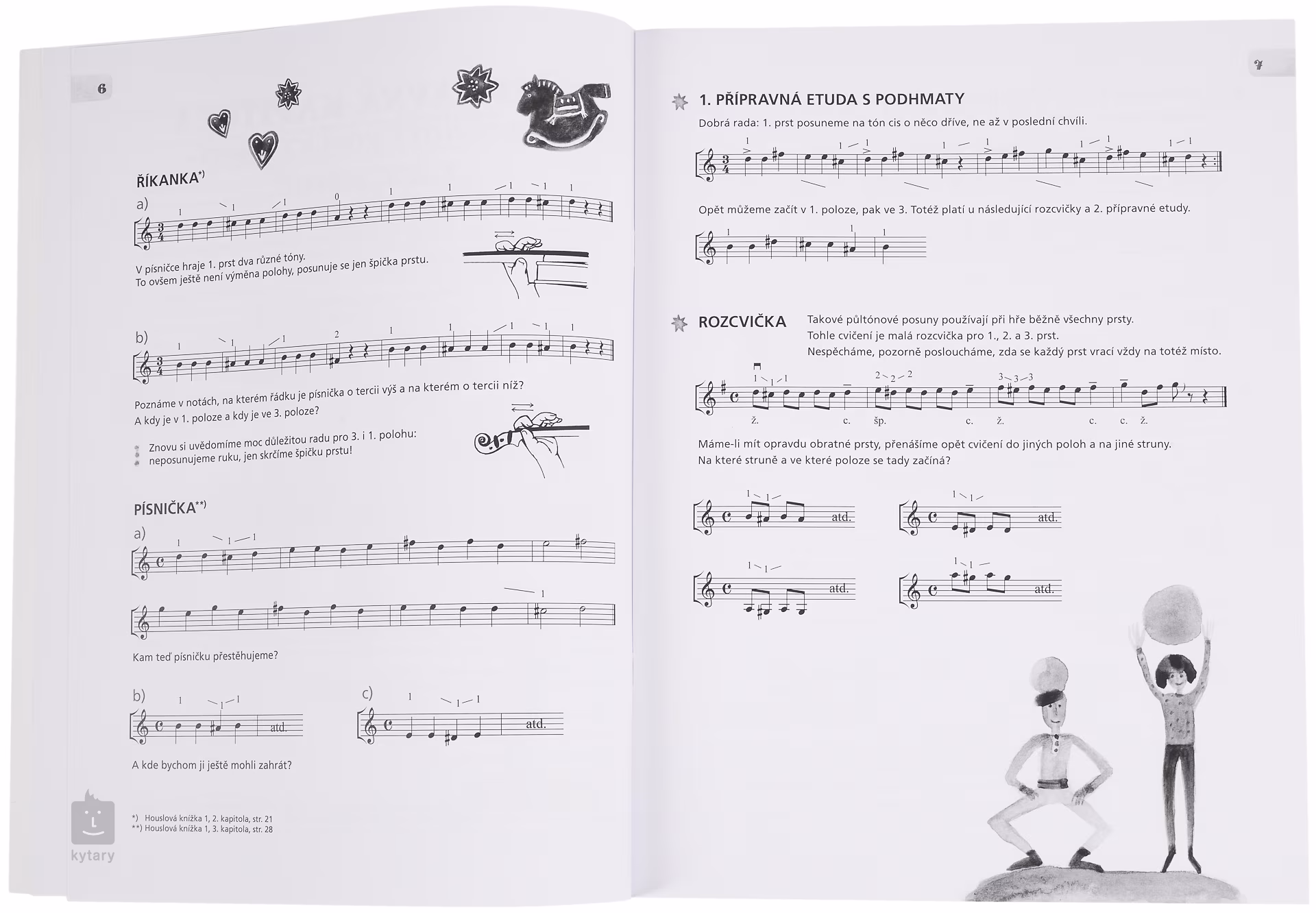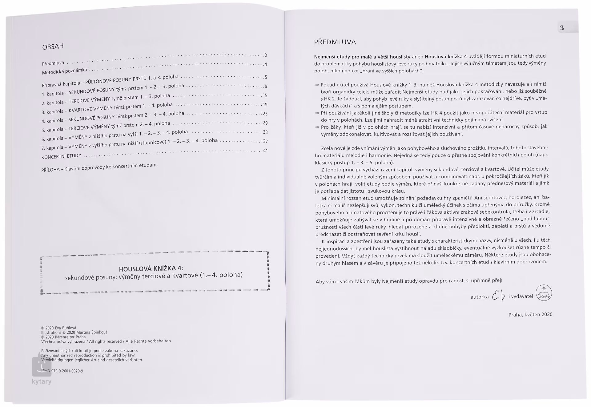 rieši otázku pohybu ľavej ruky huslistu na hmatníku. Exkluzívnou témou Najmenších etúd pre mladých a starších huslistov sú preto zmeny polohy (1. – 4.), nie len „hra vo vyšších polohách“. Úplne nové je tu vnímanie zmien polohy ako fyzického a sluchového zážitku intervalov.