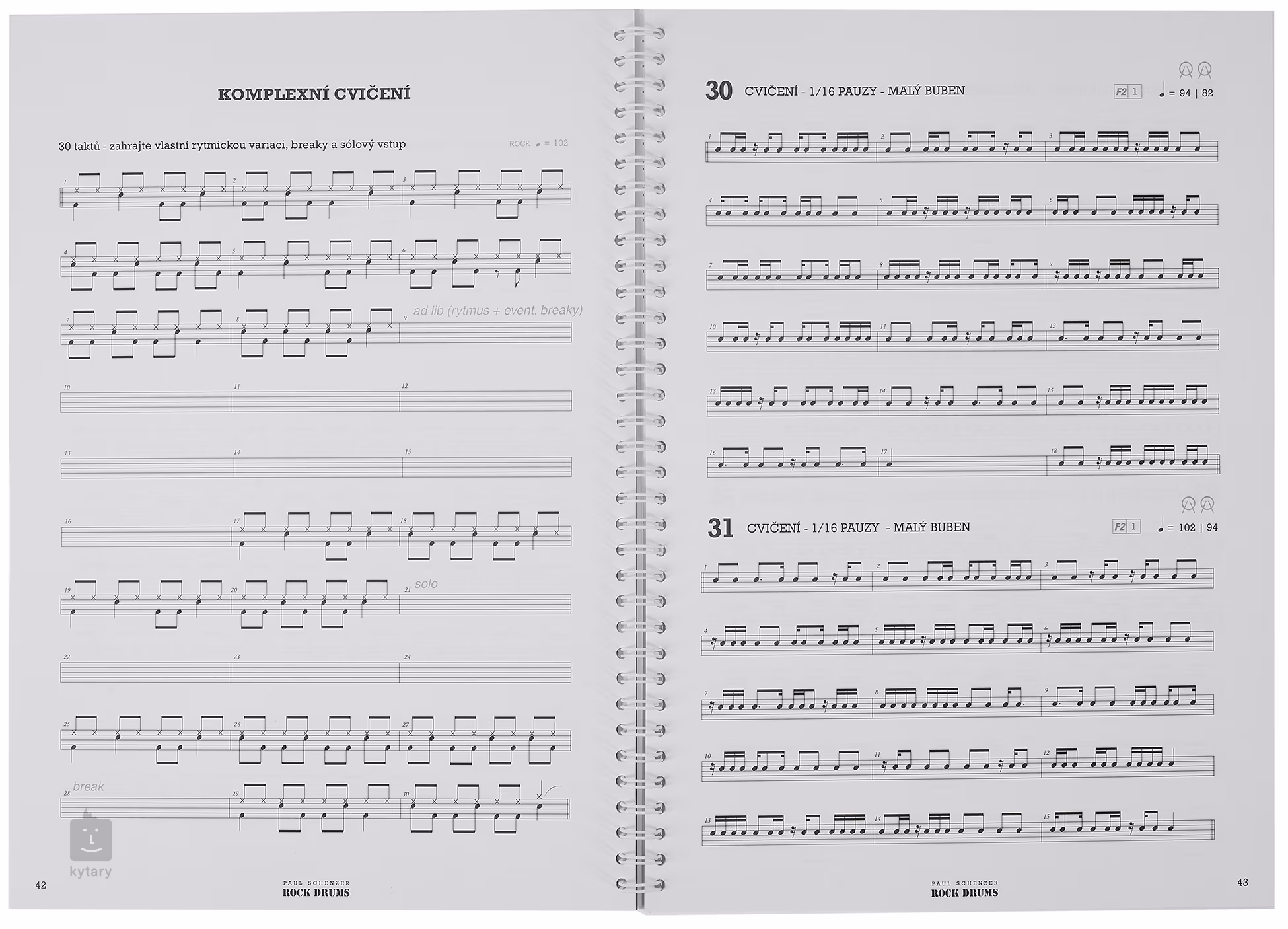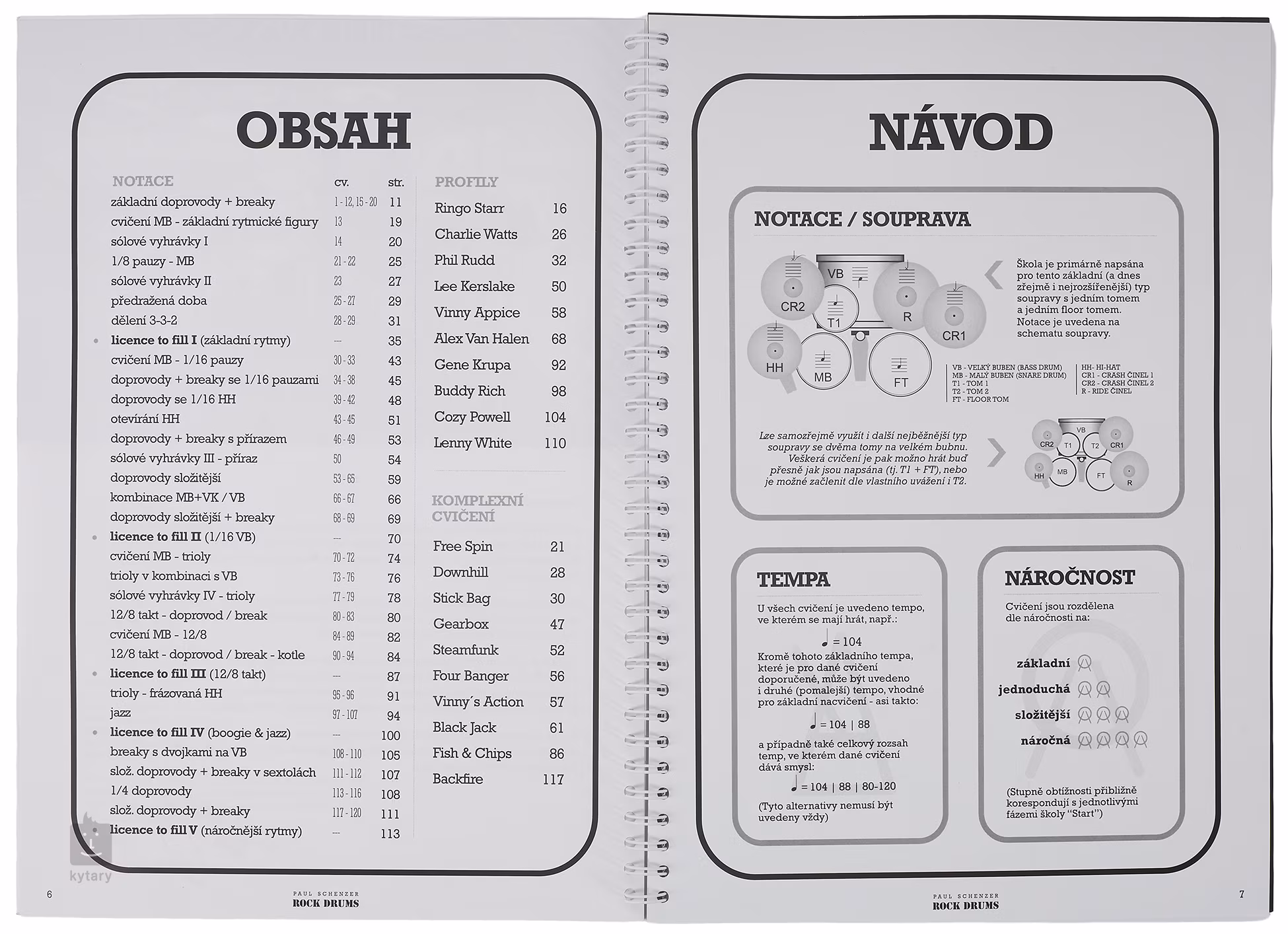 Obsah: Pred začiatkom - príprava, vybavenie, notový zápis, základné znalosti PRVÉ KROKY (fáza 1) - základné rockové rytmy, jednoduché brejky HLEDANIE DOKONALOSTI (2. fáza) - náročnejšie rytmy a breaky, rozvoj techniky SVET RYTMOV (fáza 3) - ďalšie typy rytmov: triplet, 12/8, shuffle ZÁVEREČNÁ SKÚŠKA - zhrnutie vedomostí VYŠETROVANIE - hra na 2 veľké bubny / dvojitý snare, akcenty, paradiddles, swirls, štýly - a ako ich hrať ZÁVEREČNÁ TEÓRIA - všetky praktické informácie týkajúce sa súpravy bicích nástrojov