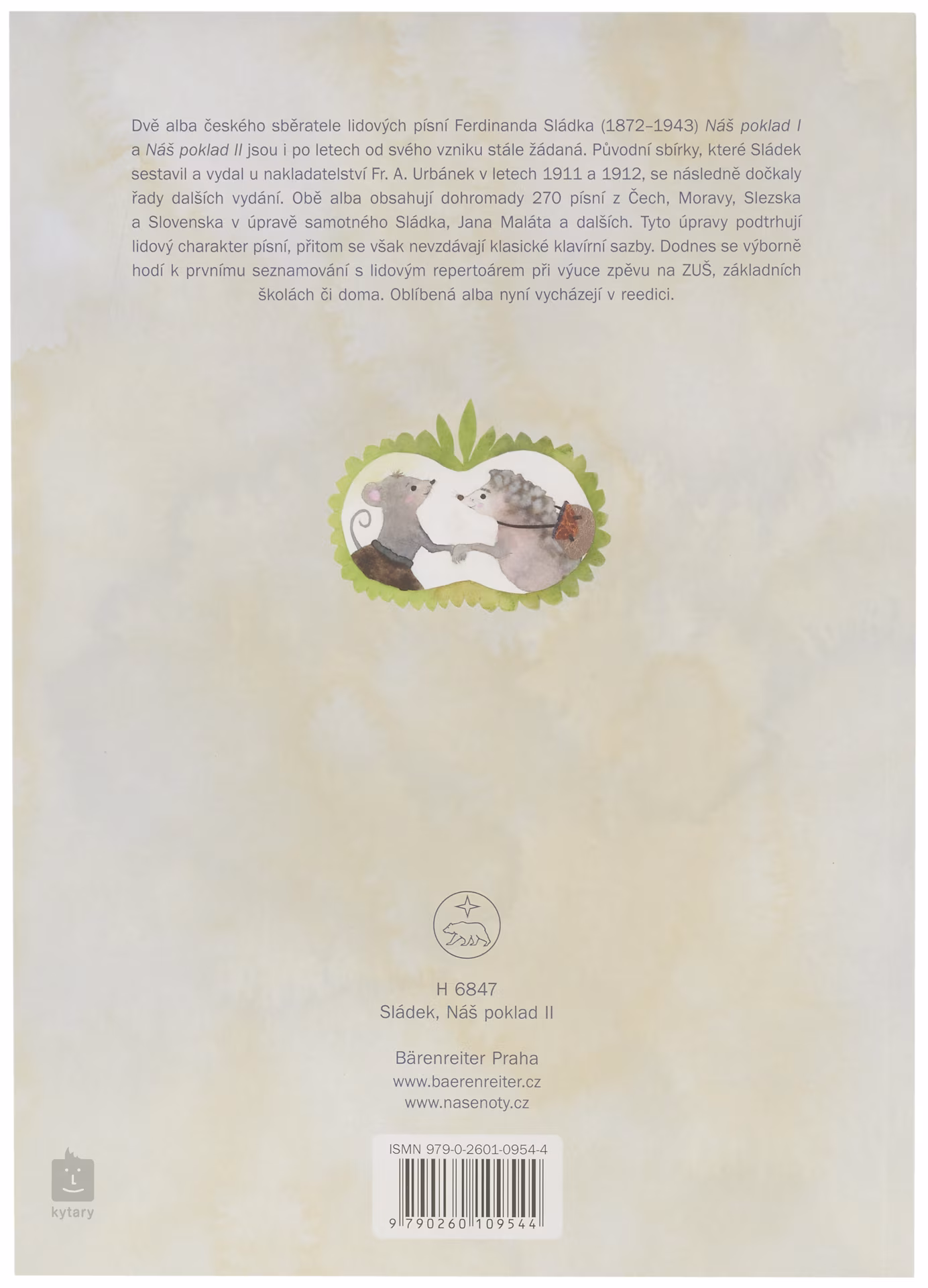 Naše poklady – II. časť od Ferdinanda Sládka je reedícia populárnych spevníkov. Publikácia je vhodná na úvodné zoznámenie sa s ľudovými piesňami v hodinách spevu na základných školách, hudobných školách a na spev doma. Obe časti obsahujú celkom 270 piesní z Čiech, Moravy a Slovenska, ktoré aranžoval sám Sládek alebo Jan Malát. Aranžmány zdôrazňujú ľudový charakter piesní, pričom zachovávajú klasickú klavírnu partitúru. Viazanie: Šité viazanie v mäkkej väzbe (V4).