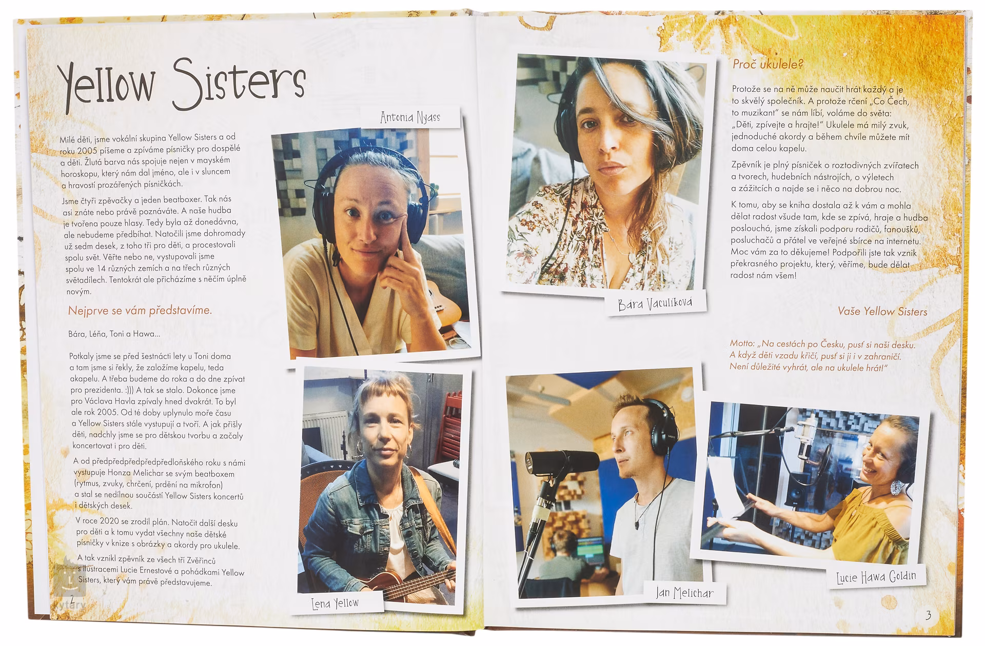 Ilustrovaný spevník pre ukulele Zvěřinec (Zverinec) sumarizuje tvorbu legendárnej kapely Yellow Sisters pre deti. Každé dieťa a rodič sa môže naučiť hrať pesničky z ich albumov Zvěřinec 1-3, a čo viac! Spevník dopĺňajú krásne ilustrácie Lucie Ernestovej a niekoľko originálnych rozprávok od Yellow Sisters. Motto: „Na ukulele môžeš hrať aj ty, mama, otec, babička, dedko, švagor... a bagr!“