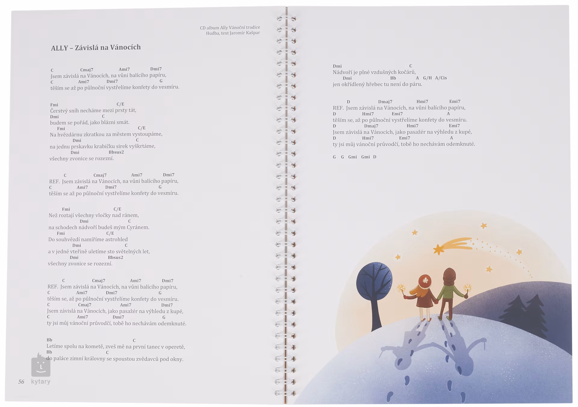 Allyho spevník Vianočné tradície. Obsahuje 13 nových originálnych českých vianočných piesní, ktoré sú usporiadané ako notové záznamy, melódie s akordmi a sprievodnými textami a samostatné texty s akordmi, všetko v plnom rozsahu. Spevník je krásne farebne ilustrovaný, viazaný krúžkovou väzbou, veľmi pohodlný na listovanie a vytlačený na kvalitnom papieri s vyššou gramážou, ako majú bežné spevníky. Spevník obsahuje aj texty od samotnej speváčky Ally, ktorá tieto vianočné piesne vydala aj na CD albume Ally Christmas Traditions.