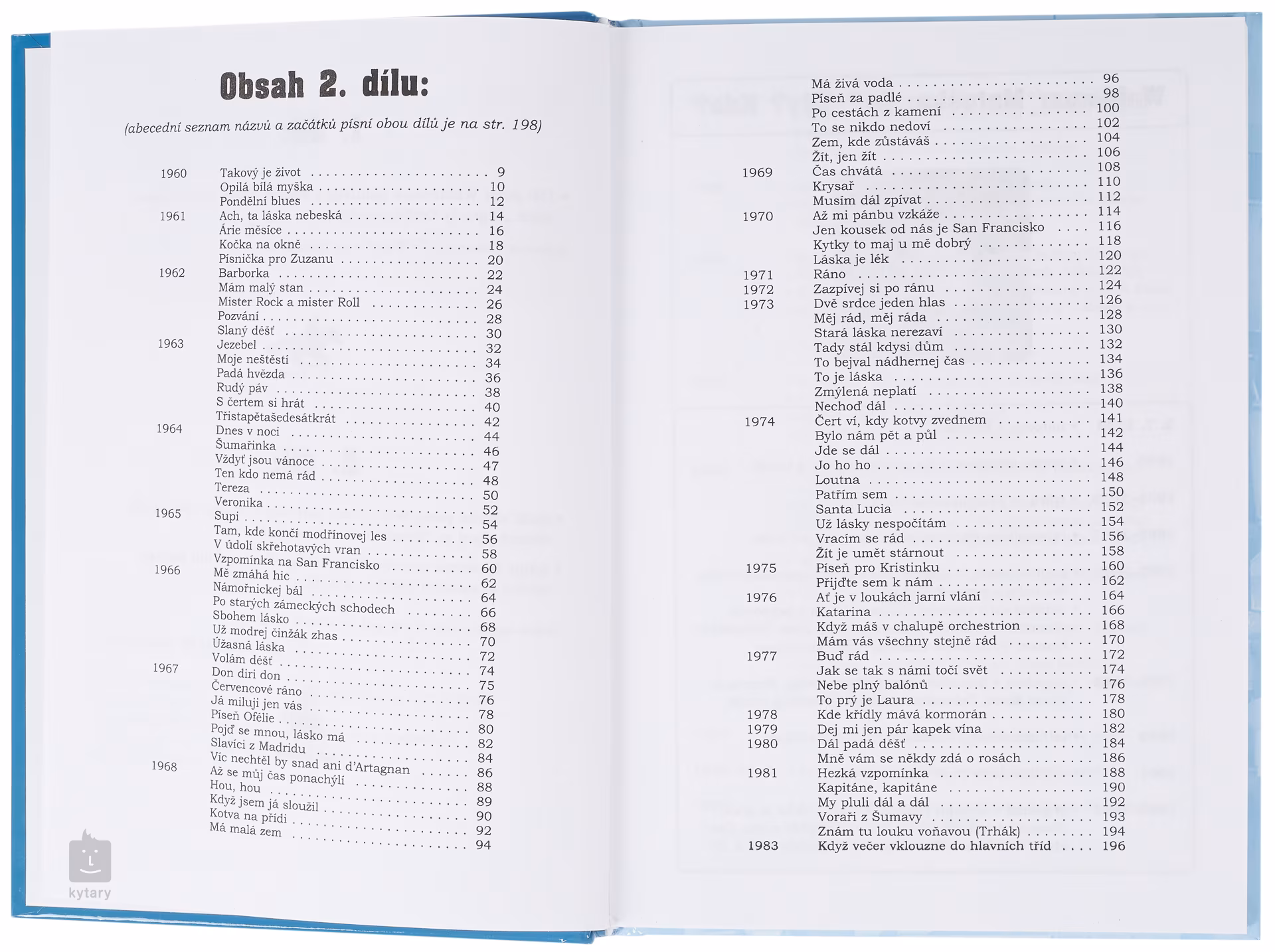 Spevník so stovkou známych piesní legendy českej populárnej hudby, vrátane piesní z obdobia Semaforu (Mesačná ária, Pieseň pre Zuzanu, Mám malý stan, Tereza, Námornícky bál, Don Diri Don, Slávici z Madridu, Krysař, Jo ho ho, Keď máš v chalupe orchestrión, Nebo plné balónov, ...).