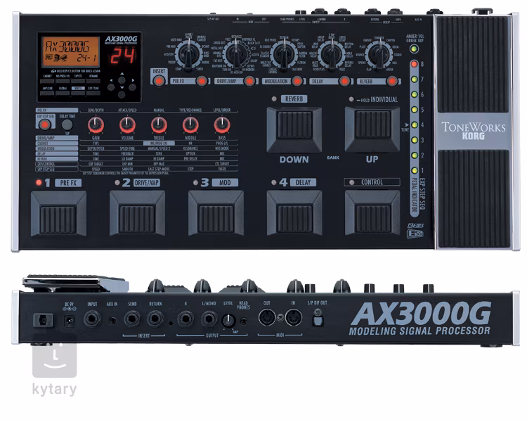 AX3000G představuje výkonný multi-efektový procesor se špičkovým zvukem a možnostmi ovládání. Tento efektový procesor nabízí známou modelační technologii Korg „REMS“, a přináší vysoce kvalitní modulace zvuků a četné způsoby jejich ovládání v reálném čase. Společně s expression pedálem, kontrolním přepínačem a expression step sekvencerem vám AX3000G Modeling Signal Processor poskytne vše potřebné pro uskutečnění vašich hudebních vizí.