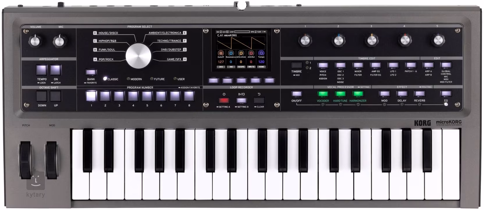 KORG MicroKORG je jedným z najikonickejších a najslávnejších syntetizátorov v histórii hudby, ktorý svojimi jedinečnými funkciami a nezameniteľnými zvukmi spôsobil revolúciu v hudobnom svete. Bol použitý v nespočetných legendárnych vystúpeniach a nahrávkach a jeho odkaz pretrváva už viac ako 20 rokov. Známy a milovaný hudobníkmi, zvukovými inžiniermi a producentmi na celom svete, microKORG sa teraz vyvinul na výkonnejšiu, flexibilnejšiu a všestrannejšiu úroveň.