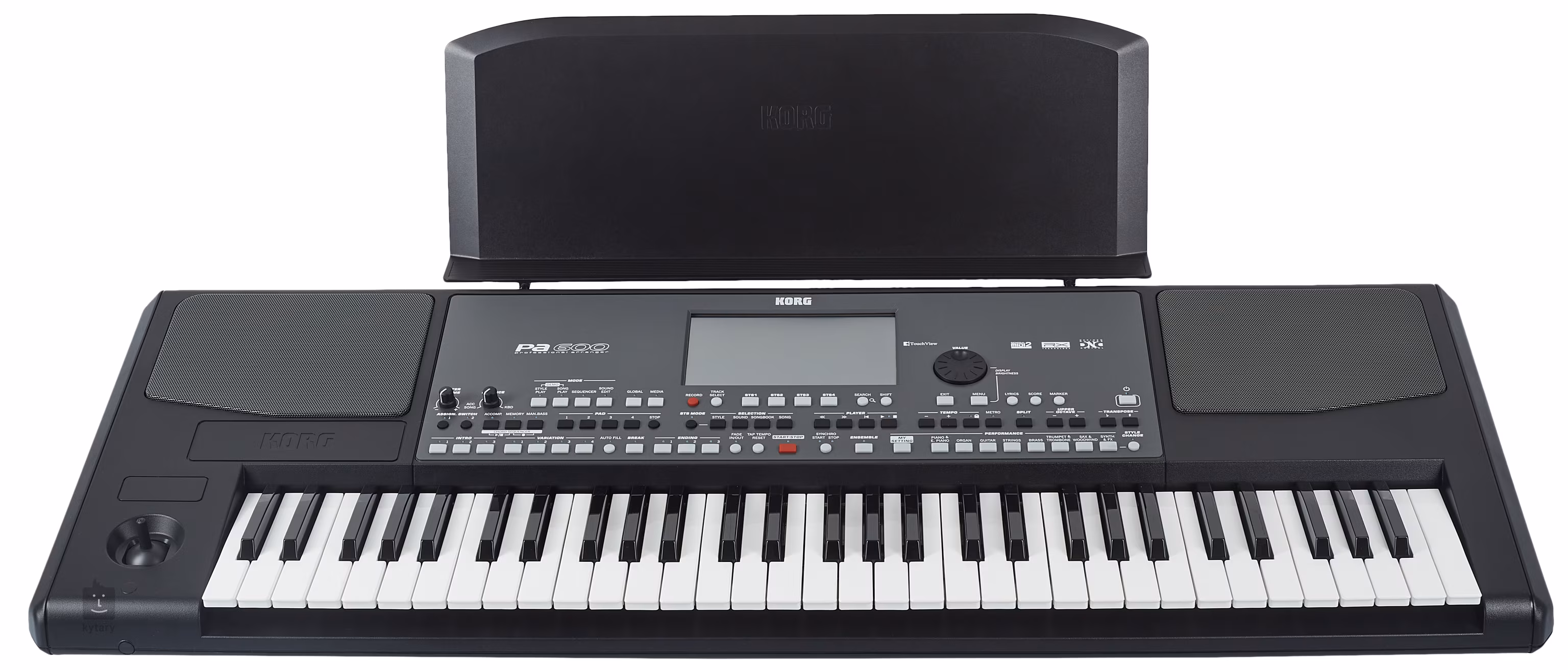 Funkcie Pa600: - Vylepšený generátor zvuku RX (Real eXperience) a DNC (Defined Nuance Control) ponúkajú lepší, realistickejší a živší zvuk. - Veľká interná zvuková pamäť Factory PCM a až 96 MB užívateľských dát PCM znamená ďalší priestor pre zvuky najvyššej kvality. - Dva programovateľné prepínače a štvorsmerový joystick poskytujú úplné ovládanie na rôznych úrovniach definovaného ovládania (DNC). - Veľký, jasne podsvietený farebný TFT displej TouchViewTM s rozlíšením 800 × 480 bodov. - Prehľadný panel a intuitívne grafické rozhranie s novou funkciou vyhľadávania na jednoduché vyhľadávanie. Nové funkcie na prácu s kopírovaním/vkladaním, premenovaním a odstraňovaním údajov. - Viac ako 360 pripravených štýlov, z ktorých každý obsahuje tri verzie Intro/Ending, štyri variácie a štyri variácie Fill In + Break, plus 10 obľúbených a 3 užívateľské banky na ukladanie obľúbených upravených alebo uložených štýlov. Prepracovaný režim Guitar Mode 2 pre ešte realistickejšie gitarové party a synchronizované pady. - Funkcia Chord Sequencer na priebežné nahrávanie akordov. - Vylepšená sada GM pre štandardné súbory Midi, prehrávač MP3 s funkciami Transpose a Tempo Change, kompatibilný s používanými textovými formátmi vrátane Graphic (+G), Text Viewer, Marker a Score. - 4 Stereo Master efekty (125 FX algoritmov). - Plne programovateľná databáza SongBook založená na štýloch, SMF, Karaoke, MP3 s okamžitým vyvolaním akéhokoľvek nastavenia skladby.
