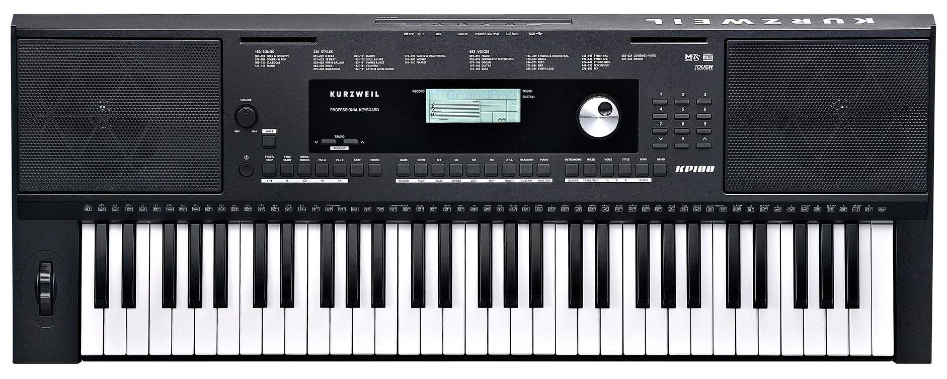 Kurzweill KP100 je klaviatúra s dynamikou a nastaviteľnou citlivosťou klaviatúry. Ponúka 633 vysokokvalitných zvukov vrátane ceneného zvuku klavíra Triple Strike Piano známeho zo série PC 3.