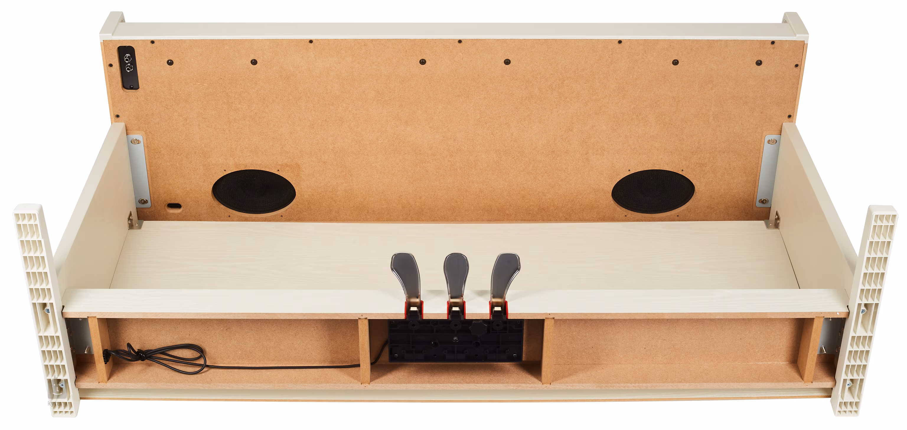 Digitálne piana série M sú vhodné pre začiatočníkov a pokročilejších hráčov, ktorí vyžadujú pevný a sebaistý zvuk piana v kombinácii s krásnym pôžitkom z hry. Na prvý pohľad tradičný nástroj skrýva sofistikovaný systém plný najmodernejších technológií, ktoré zodpovedajú moderným trendom a vynikajúcej kompatibilite s elektronickými zariadeniami. M115 vám ponúka 88 plne vyvážených klávesov s desiatimi úrovňami dynamiky alebo 30 zvukov od akustických a elektrických pián až po organy, gitary a strunové nástroje. Navyše môžete využiť až tridsať rytmických vzorov, výukový systém a päťdesiat demo skladieb uložených v internej pamäti, s ktorými môžete hrať alebo improvizovať. Výsledný signál potom môžete upravovať pomocou efektov reverb alebo chorus a dosiahnuť tak vlastný, úplne originálny zvuk. Zabudovaný trojpedálový systém potom vnesie do vašej hry ľahkosť a dynamiku. Dva 25W reproduktory bez problémov ozvučia malú koncertnú sálu alebo hudobnú učebňu a vy ani nemusíte premýšľať, či ste nástroj vypli alebo nie. Po dvoch hodinách nečinnosti sa automaticky vypne. Na zadnom paneli nájdete vstupno-výstupné konektory RCA pre hudobné prehrávače a PA systémy alebo port USB na prenos signálu MIDI. Súčasťou balenia je aj klavírna stolička.