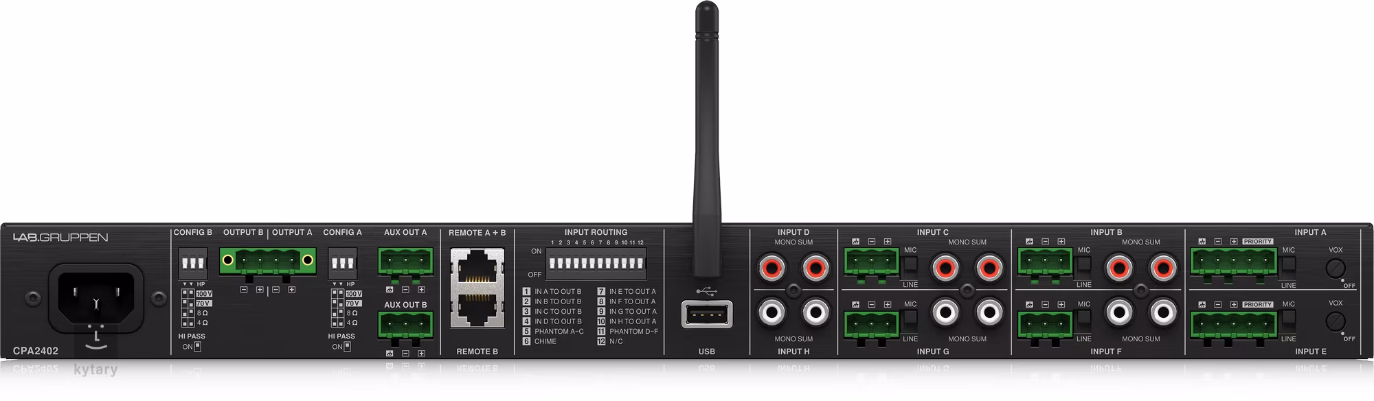 Lab Gruppen CPA2402 je dvojzónový 8-kanálový vstupný zosilňovač s funkciami prehrávania cez Bluetooth a USB. Je ideálnym riešením pre komerčné a priemyselné aplikácie, ktoré vyžadujú skvelý zvuk v spojení s energeticky úspornými prevádzkovými nákladmi.
