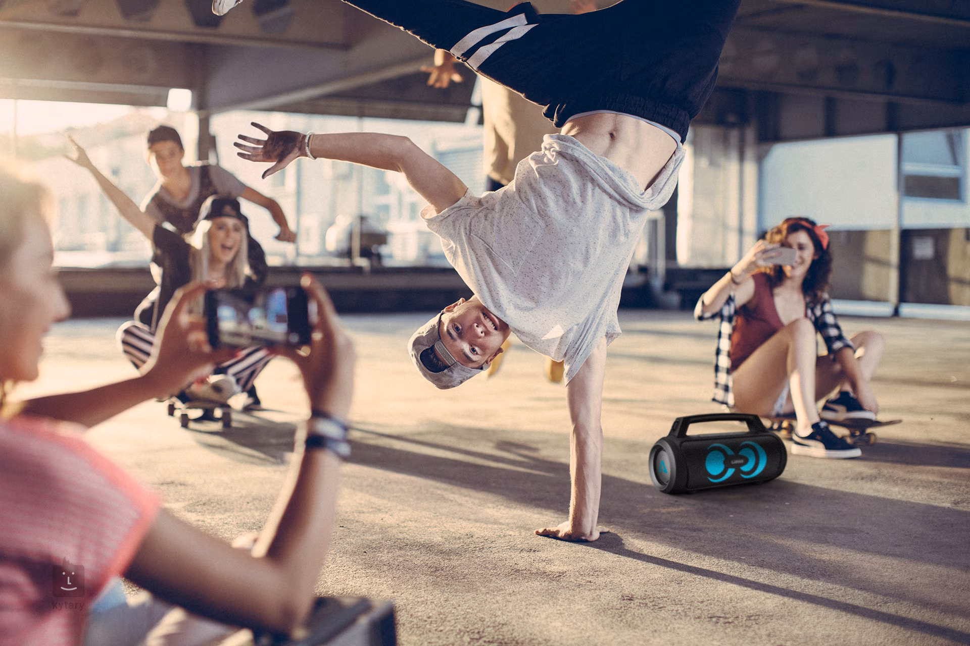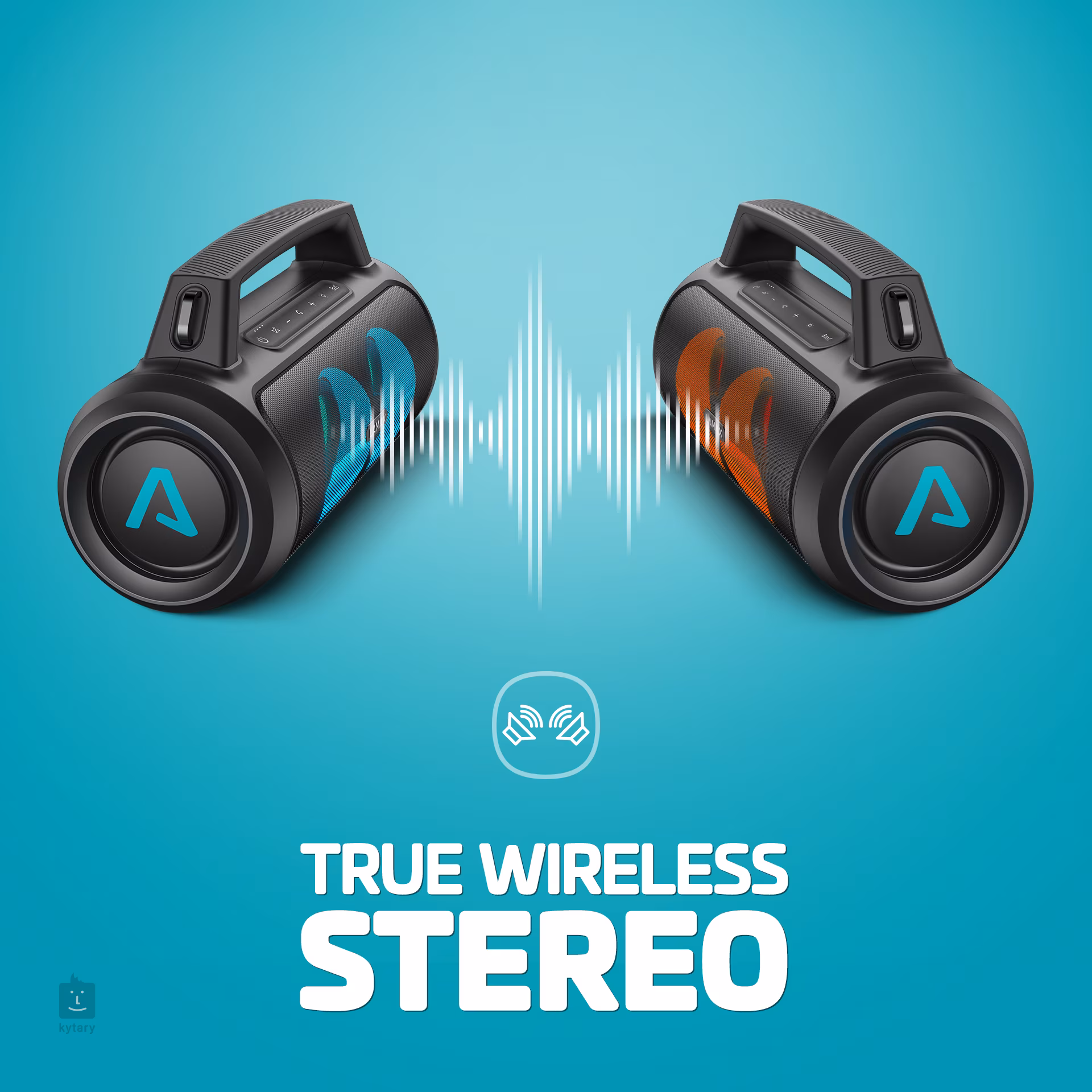 Reproduktor je vybavený najmodernejšou technológiou Bluetooth 5.3 pre rýchle a stabilné bezdrôtové pripojenie až do vzdialenosti 18 metrov. Ponúka tiež možnosti prehrávania súborov MP3, WAV, FLAC a APE prostredníctvom USB, microSD alebo analógového vstupu AUX. K dispozícii je aj integrované FM rádio a port USB-A funguje ako powerbanka, napríklad pre váš telefón. Elegantný a prenosný dizajn s ergonomickou rukoväťou a popruhom zaistí pohodlné prenášanie a výdrž batérie až 15 hodín zabezpečí dlhotrvajúcu zábavu. A ak zábava vlajkuje, k dispozícii je mikrofón ideálny na karaoke alebo moderovanie. Tri režimy podsvietenia LED dodajú atmosféru každej udalosti.