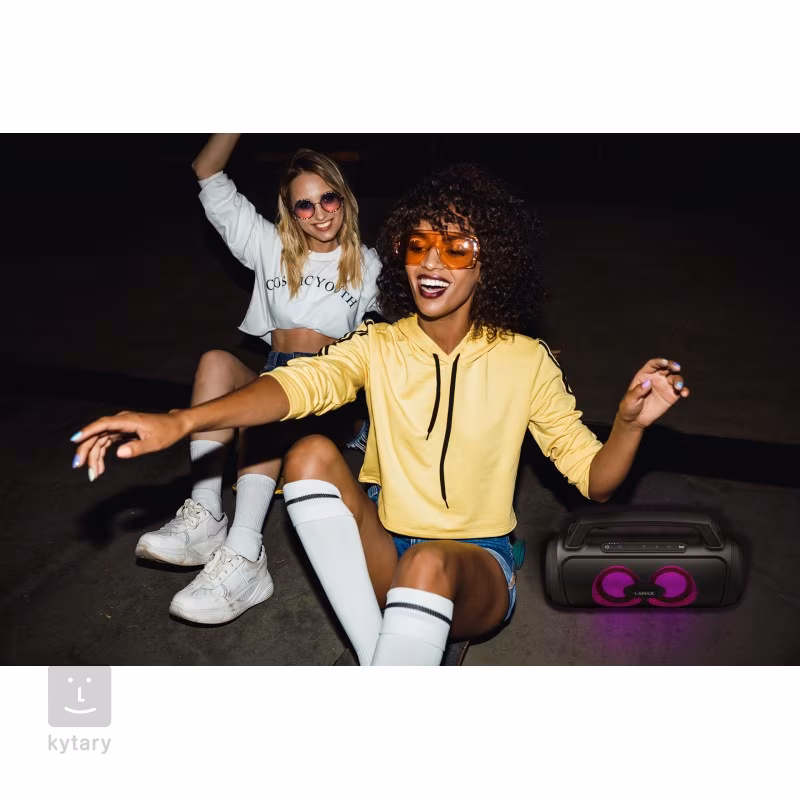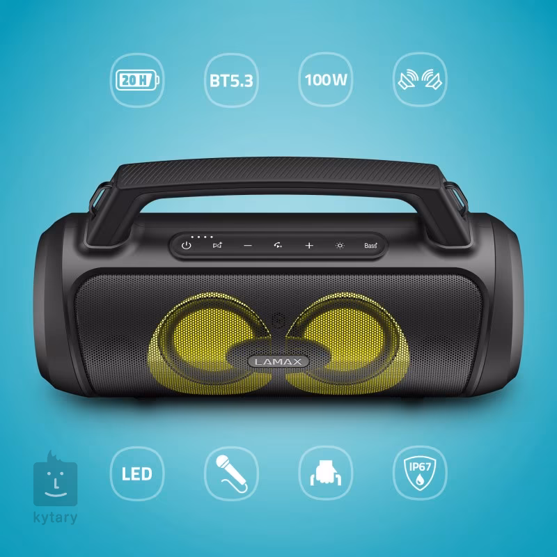 LAMAX PartyGo1 je prenosný bluetooth reproduktor, ktorý tak trochu klame telom. Zdanlivo subtílny dizajn skrýva veľký výkon v podobe 100 W výkonného zosilňovača, ktorý budí dva woofery a dva meniče vyšších frekvencií. Technológia BeatBass® potom prináša silný, plný a bohatý zvuk.
