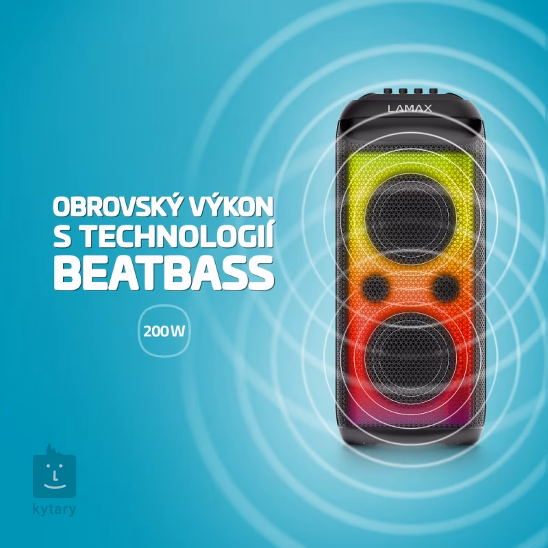 LAMAX PartyKing1 Max je moderný prenosný reproduktor s masívnym výkonom 200 W, ktorý sa nepochybne stane kráľom každej akcie. Neurobí hanbu ani veľkej svadbe, vaše bazénové párty sa stanú legendárnymi a KingMax ich v pokoji prežije vďaka ochrane IPX4. A navyše cez neho môžete spievať a hrať na gitare. Vďaka dvojpásmovej konštrukcii, ekvalizéru a pokročilej technológii BeatBass® si vychutnáte hlboké basy, ktoré nepochybne rozprúdia rytmus.