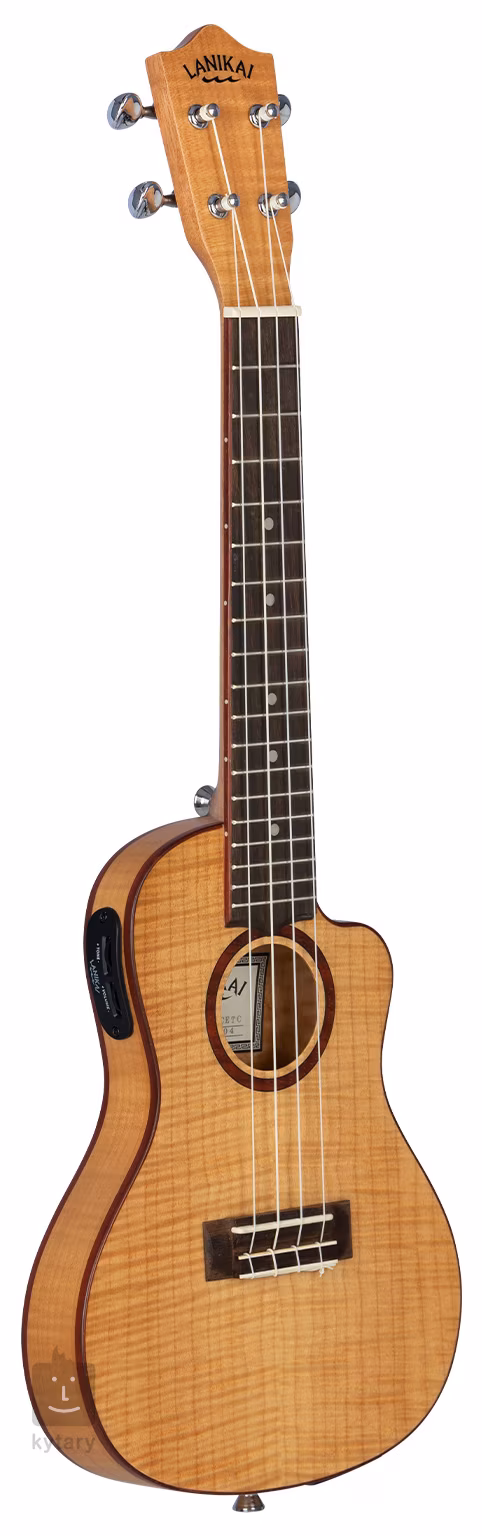 Elegantné úzke telo elektroakustického koncertného ukulele zo série Lanikai Flame Maple je vyrobené z laminovaného javora s výraznou kresbou, ktorá nástroju dodáva luxusný vzhľad. Ku krku z okoumé je prilepený hmatník z figového dreva osadený osemnástimi pražcami. Príjemný profil krku, širší nultý pražec a nižší výrez tela poskytujú optimálny komfort pri hre.
