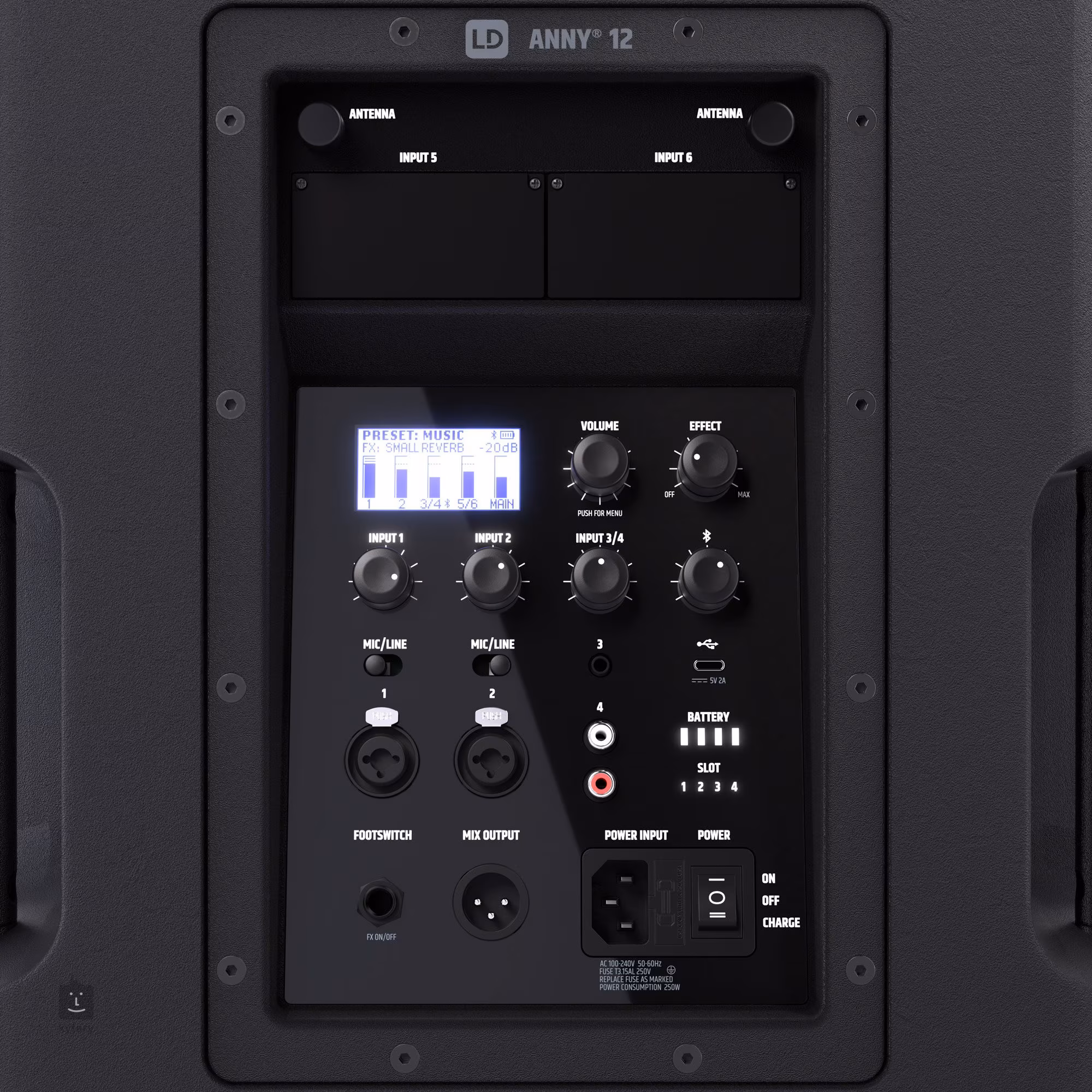 LD Systems ANNY 12 je výkonný a plne vybavený prenosný aktívny PA systém, ktorý spája profesionálny zvuk, prevádzku na batérie a maximálnu flexibilitu pre akúkoľvek akciu. Vďaka výkonu 185 W RMS (až 215 W špičkový) a maximálnemu akustickému tlaku 122 dB SPL bez problémov ozvučí menšie aj stredne veľké priestory – od festivalov a firemných podujatí až po pouličné vystúpenia či párty. Vybavenie 12" wooferom a 1" výškovým reproduktorom zaisťuje plný, dynamický a zrozumiteľný zvuk v celom frekvenčnom spektre.