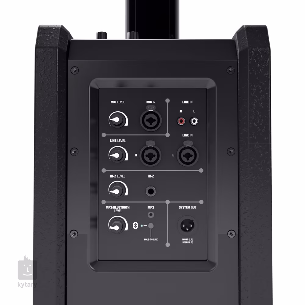 MAUI 11 G2 je všestranný kompaktný PA systém s Bluetooth a integrovaným štvorkanálovým mixážnym pultom. Technológia DynX DSP a usporiadanie reproduktorov poskytuje väčší rozsah pokrytia miestnosti a zachováva rovnakú kvalitu počúvania pre poslucháčov v prvom rade aj pre vzdialenejších poslucháčov. Zosilňovač triedy D je vybavený rôznymi ochrannými obvodmi (obmedzovač, tepelná ochrana, skrat) pre bezproblémovú prevádzku systému. Okrem štandardných stereofónnych vstupov (Line In, RCA) je hlavný panel vybavený vstupmi pre mikrofón, prístroj a MP3, pričom každý z nich má samostatné ovládanie hlasitosti. Ak chcete synchronizovať so zariadením Bluetooth, stačí podržať ovládač. Rýchle a pohodlné prepojenie medzi satelitmi a subwooferom umožňuje stĺpový systém bez akýchkoľvek káblov.
