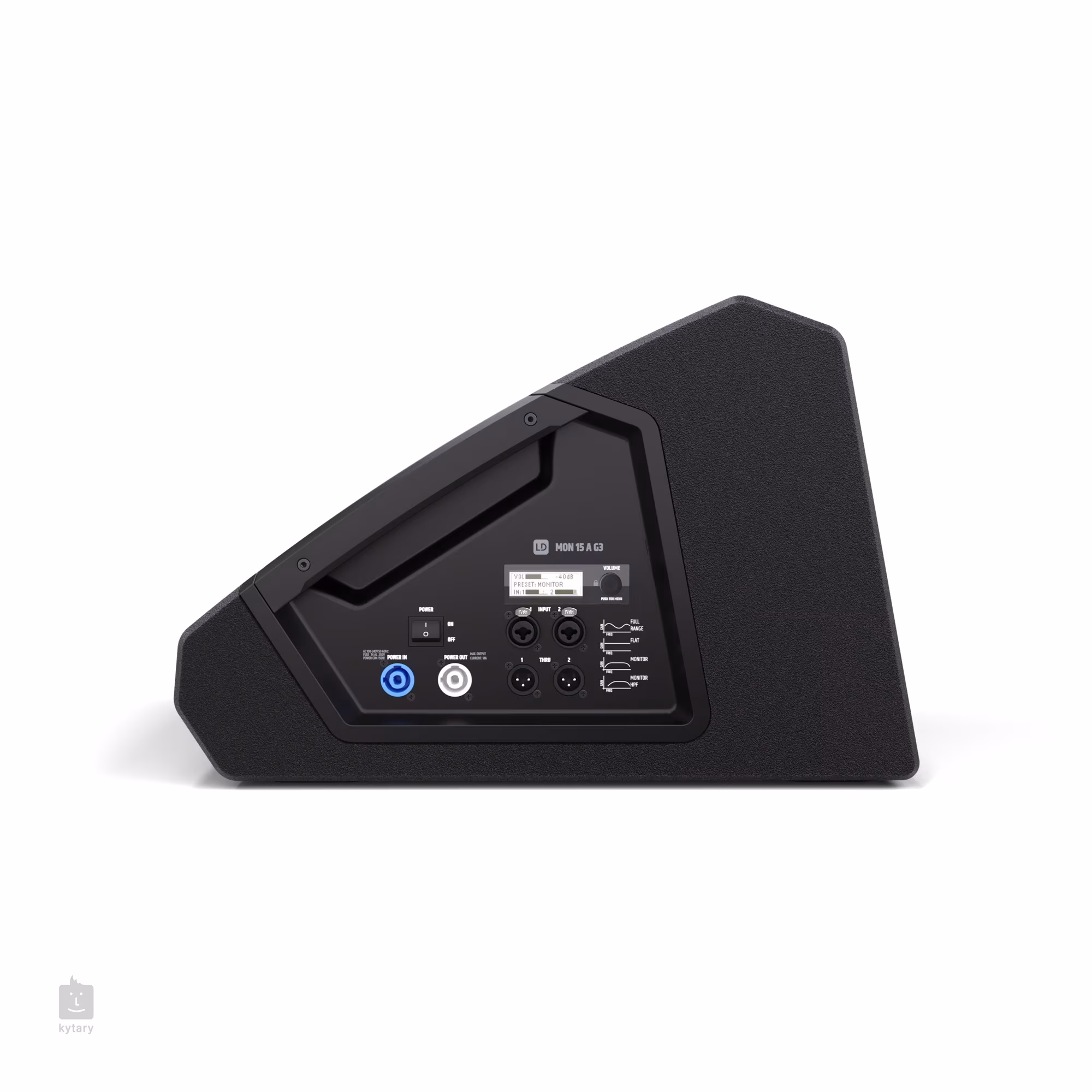 LD Systems MON 15 A G3 je dvojpásmový aktívny pódiový reproduktor s koaxiálnou konštrukciou, maximálnym výkonom 1200 W (300 W RMS), zosilňovačom triedy D, frekvenčnou odozvou (-10 dB: 48 Hz - 20 kHz, -3 dB: 58 Hz - 18 kHz), 33-stupňovým náklonom monitora, priestorovou zvukovou projekciou 50 x 90 stupňov, trojpásmovým ekvalizérom, zárezovým filtrom a funkciou oneskorenia. Koaxiálna konfigurácia zabezpečuje menšiu náchylnosť na spätnú väzbu. MON 15 A G3 možno namontovať aj na štandardné reproduktorové stojany (35 mm hniezdo) - môže teda slúžiť ako pódiový reproduktor, ako aj FOH reproduktor na stojane.