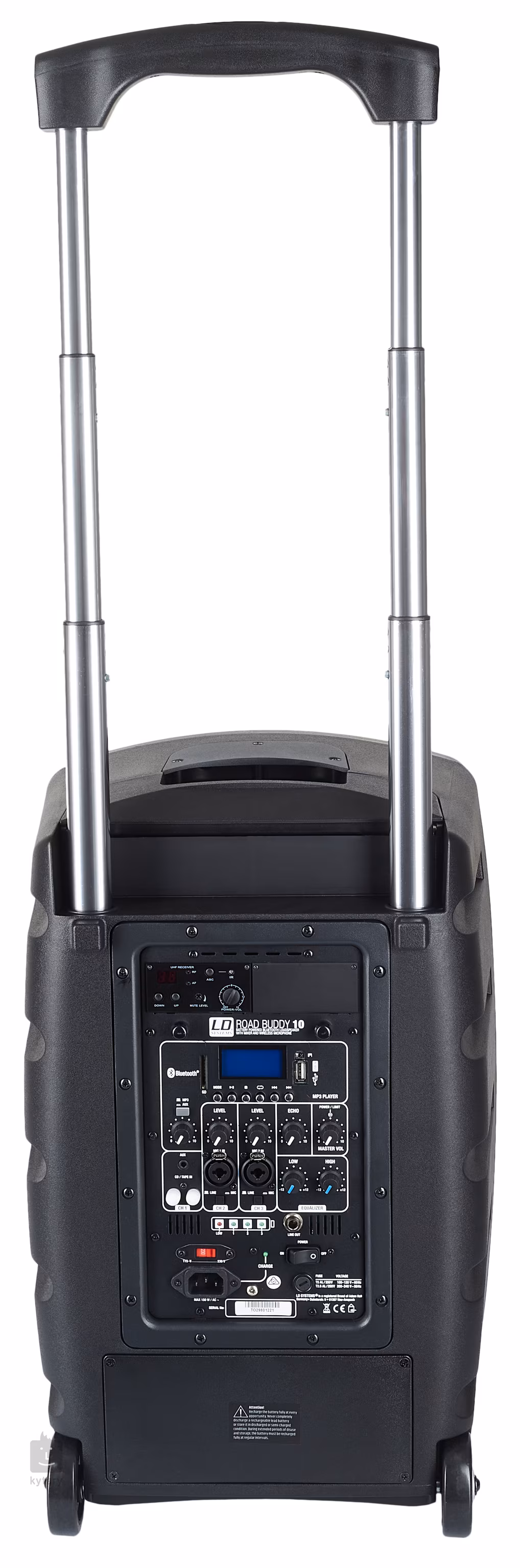 LD Systems Roadbuddy je snadno přenosný díky zabudovaným kolečkům a výsuvnému madlu. Na horní straně se nachází praktický úložný prostor pro až dva ruční vysílací mikrofony. Skříň tohoto lehkého zařízení byla navržena tak, aby se do ní vešel i 35 mm otvor na stativ.