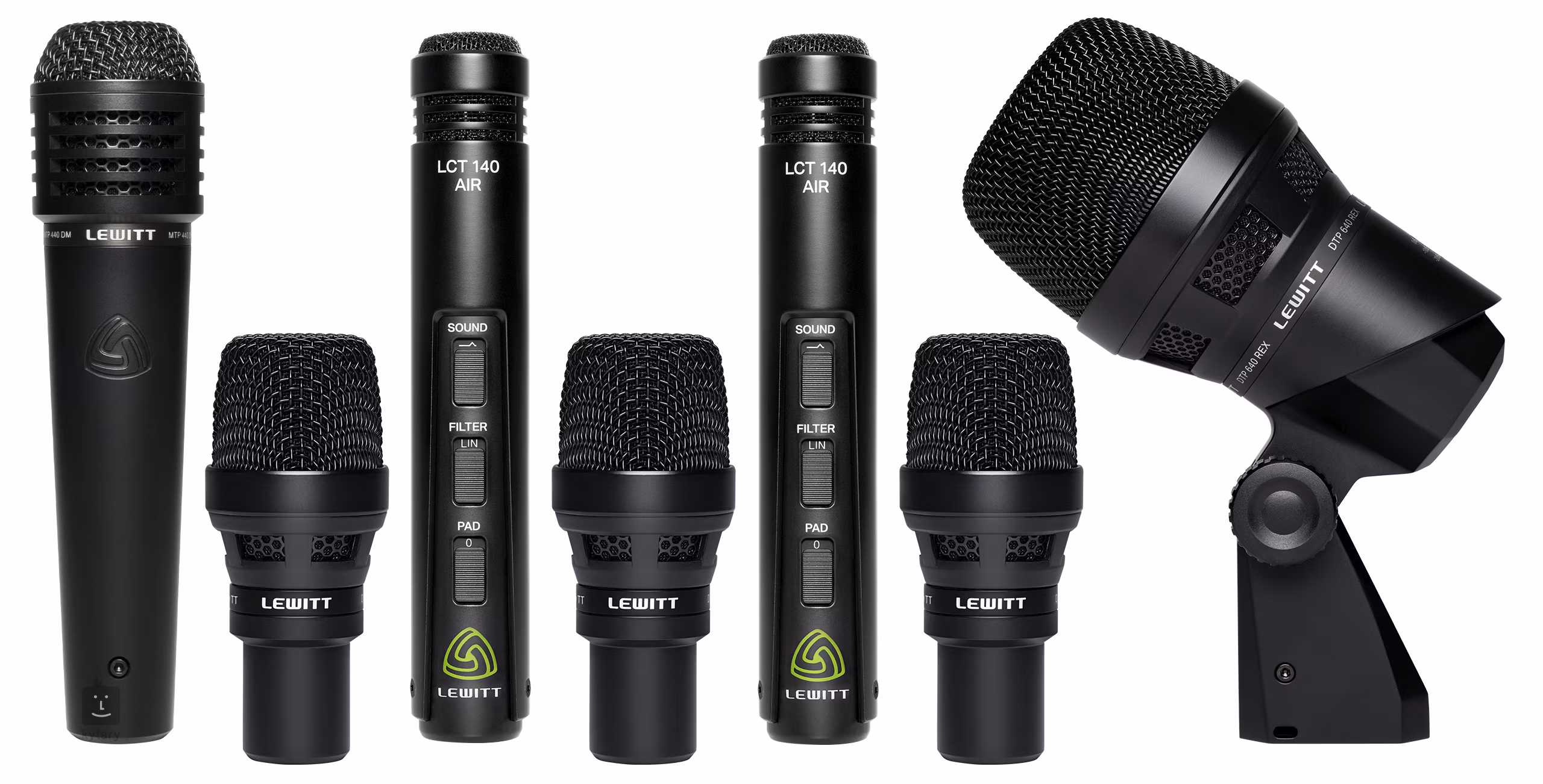 Súprava siedmich mikrofónov Lewitt BEATKIT PRO je vhodná na ozvučenie bicieho súboru v nahrávacom štúdiu alebo pri živom vystúpení. Sada obsahuje mikrofón DTP 340 REX pre basový bubon, MTP 440 DM pre snare bubon, tri mikrofóny DTP 340 TT pre tomy a stereo pár LCT 140 AIR pre overhead nahrávanie. Súčasťou balenia je aj šesť mikrofónových držiakov, dva protiveterné kryty pre ceruzkové mikrofóny, rozdeľovač káblov 5pin na 2x 3pin XLR s dĺžkou 1,5 m a robustné puzdro na bezpečnú prepravu.