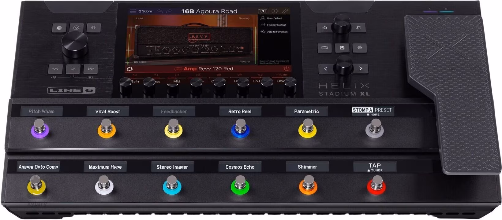 Velký přínos představuje také aktualizované uživatelské rozhraní, které je ladnější a intuitivnější, než kdy dřív. V samotném srdci ovládacího panelu se nachází 8″ dotykový displej, který vám usnadní orientaci v presetech, parametrech, nastavení signálové cesty a dalších úpravách. V kombinaci s kvalitním expression pedálem, bohatou výbavou footswitchů, tlačítek a potenciometrů vám zajistí plynulou práci a rychlé přepínání mezi vašimi oblíbenými zvuky, což využijete zejména při živém vystupování. Procesor je vybaven také WiFi připojením a technologií Bluetooth, což vám usnadní aktualizace softwaru, instalaci nových presetů a propojení s jinými zařízeními.