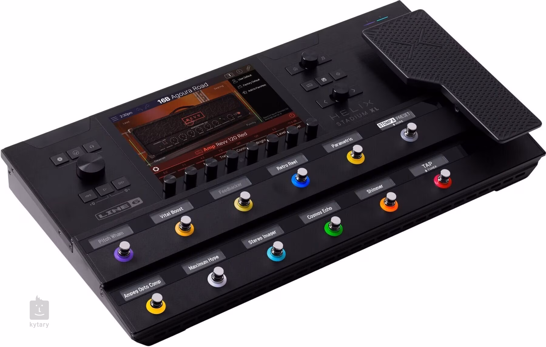 Procesor je vybaven 134 modely aparátů, 46 modely reproboxů a 274 efekty všeho druhu, od zkreslovacích efektů typu distortion nebo fuzz přes ambientní reverby a delaye až po modulační efekty jako je chorus nebo flanger. Pro uložení svých oblíbených nastavení budete mít k dispozici 512 presetových slotů, do nichž si snadno uložíte kompletní signálový řetězec. K dispozici jsou také tisíce různých IR, díky nimž zaručeně získáte přesně takový zvuk, jaký hledáte. Značka Line 6 má v oblasti digitálních modelerů dlouholetou pověst a právě Helix Stadium XL ukazuje, že chtějí nastavit nový standard pro profesionální kytaristy na pódiu i ve studiu. Pokud hledáte “all-in-one” řešení s největším možným rozsahem funkcí, tak tento model skutečně stojí za pozornost.