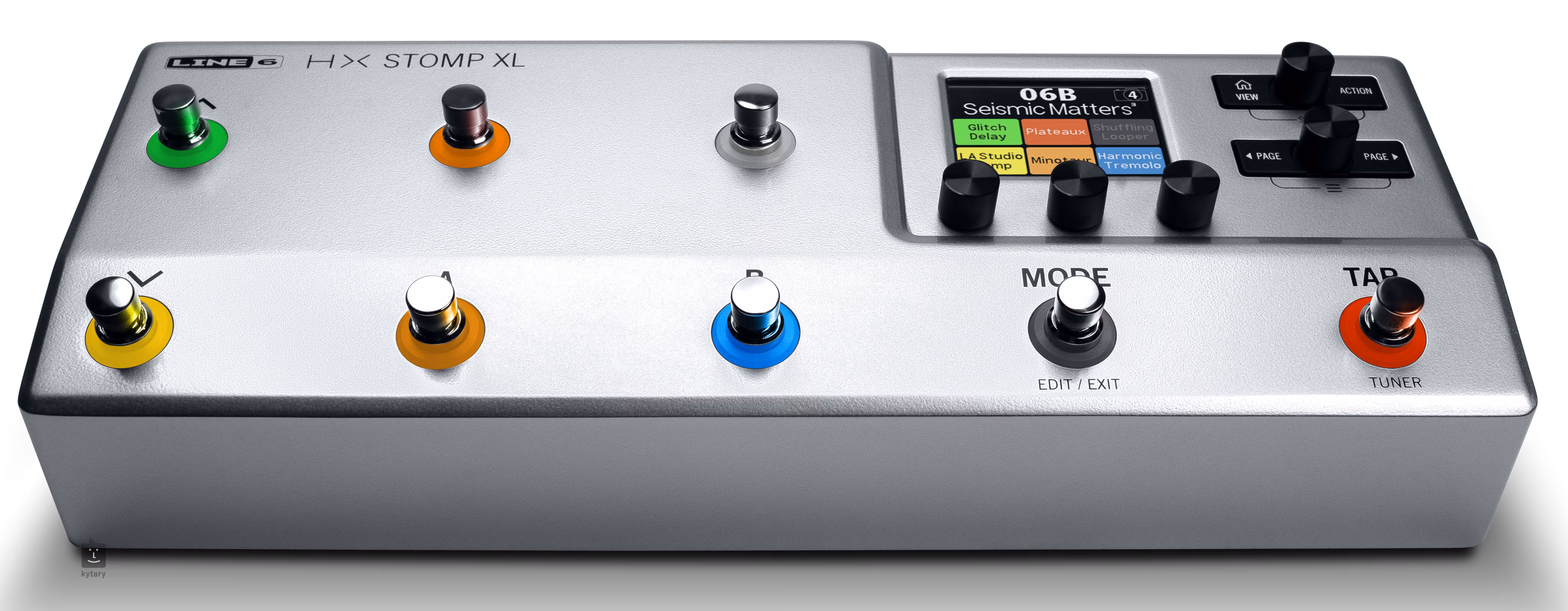 Multi-efektový procesor Line6 HX Stomp XL Silver Edition vám dobre poslúži ako "Super Stompbox", ale aj ako záložné alebo cestovné zariadenie. Je vybavený rovnakými čipmi SHARC DSP a technológiou HX Modeling ako vlajkové lode Line6 Helix, viac ako 300 modelmi HX a Legacy aparátov, kabinetov a efektov, z ktorých osem je možné používať v blokoch súčasne, celkovo 128 presetov (32 bánk po štyroch presetoch), príjemné používateľské rozhranie s 2 farbami.4" (6 cm) LCD displejom a ôsmimi nožnými spínačmi s farebnými LED krúžkami, možnosť nahrávania vlastných impulzných odoziev (IR), tri typy looperov (6 Switch, 1 Switch, Shuffling Looper), integrovaná ladička, MIDI kompatibilita, DAW pripojenie cez USB, sériové/paralelné smerovanie signálu, funkcia tap tempo a pokročilé funkcie typu Snapshot.