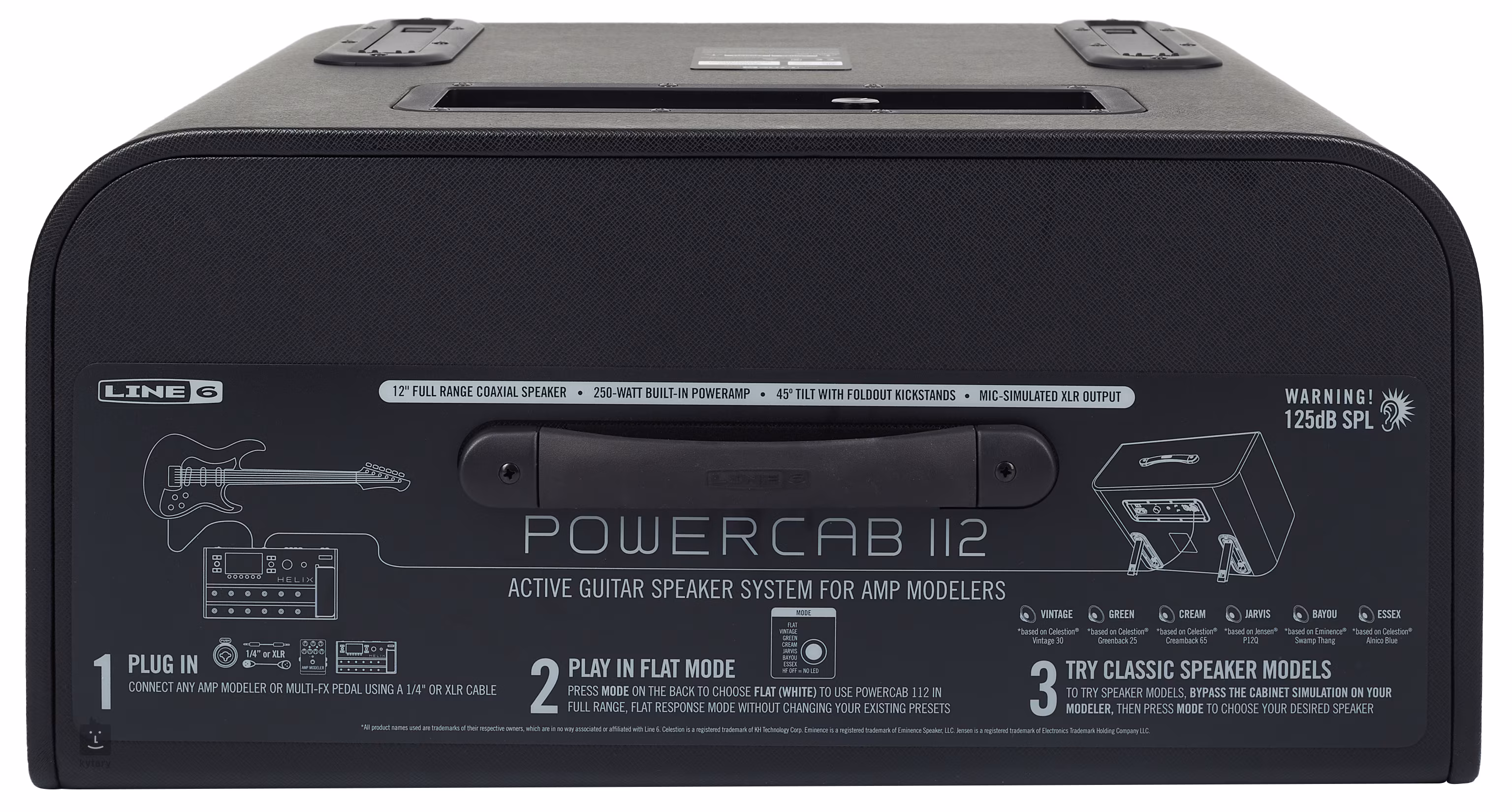 Line 6 Powercab 112 je aktívny gitarový reproduktorový kabinet vhodný na zosilnenie gitarových multiefektov a iných modelovacích zariadení, ktoré vyžadujú vernú zvukovú odozvu bez nežiaduceho sfarbenia. Je to 250 W aktívny reproduktorový kabinet vybavený vysokokvalitným 12" koaxiálnym reproduktorom Eminence a výškovým reproduktorom Celestion CDX 1-1010, čo má za následok autentickú reprodukciu celého frekvenčného spektra, od bohatých basov po prenikavé výšky.