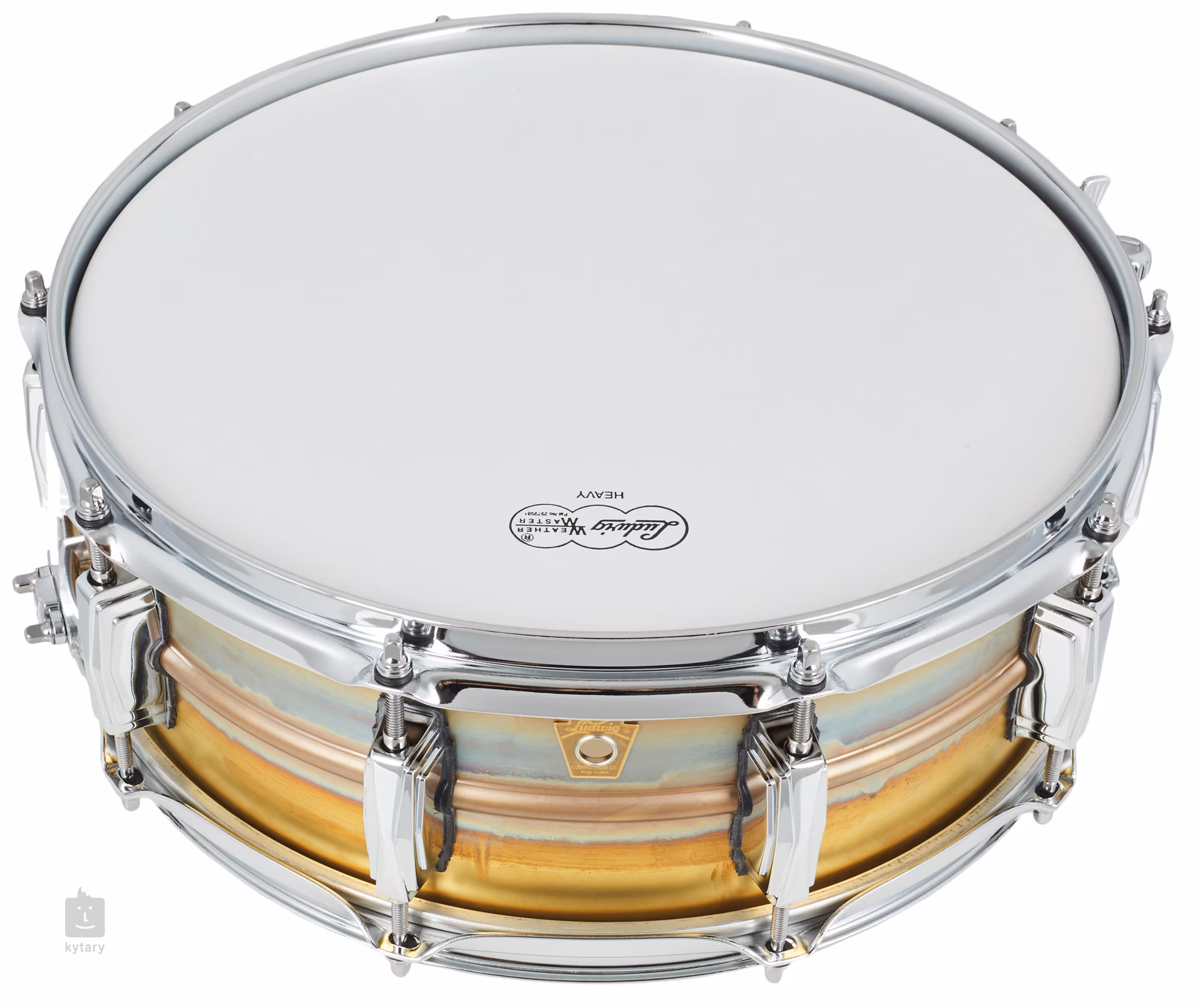 Ludwig 14" x 5" Raw Brass LB454R má telo vyrobené z 1,2 mm hrubej nelakovanej bezšvovej mosadze, trojito ohýbané 2,3 mm hrubé oceľové obruče, strunovú mechaniku P88AC Throw Off + P35P Butt Plate, desať mušlí (Imperial Lugs) a mechy Ludwig Weather Master.