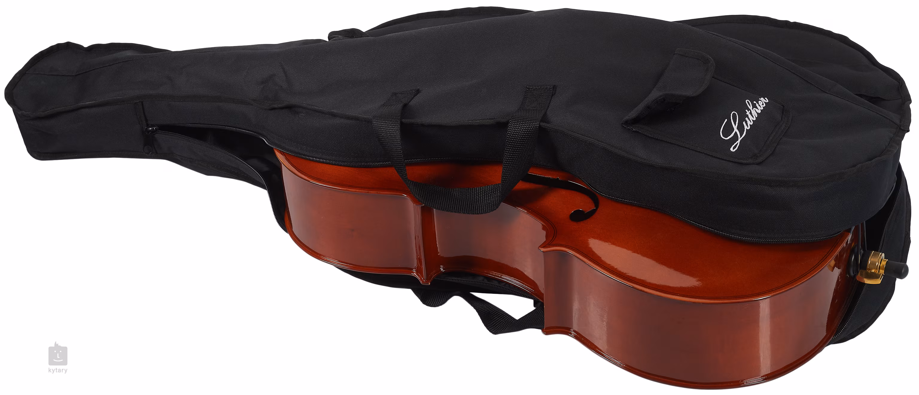Violoncello 1/2 velikosti Luthier Studio 1 - 1/2 je cenově dostupný nástroj vhodný pro začínající violoncellistky a violoncellisty. Nabízí vrchní desku z masivu smrku, spodní desku a luby z vrstveného javoru, javorový krk a kobylku, ebenové kolíčky ladicích mechanik, ebenový hmatník a struník z karbonového kompozitu se čtyřmi ladicími mechanikami. Violoncello zdobí lesklá povrchová úprava.