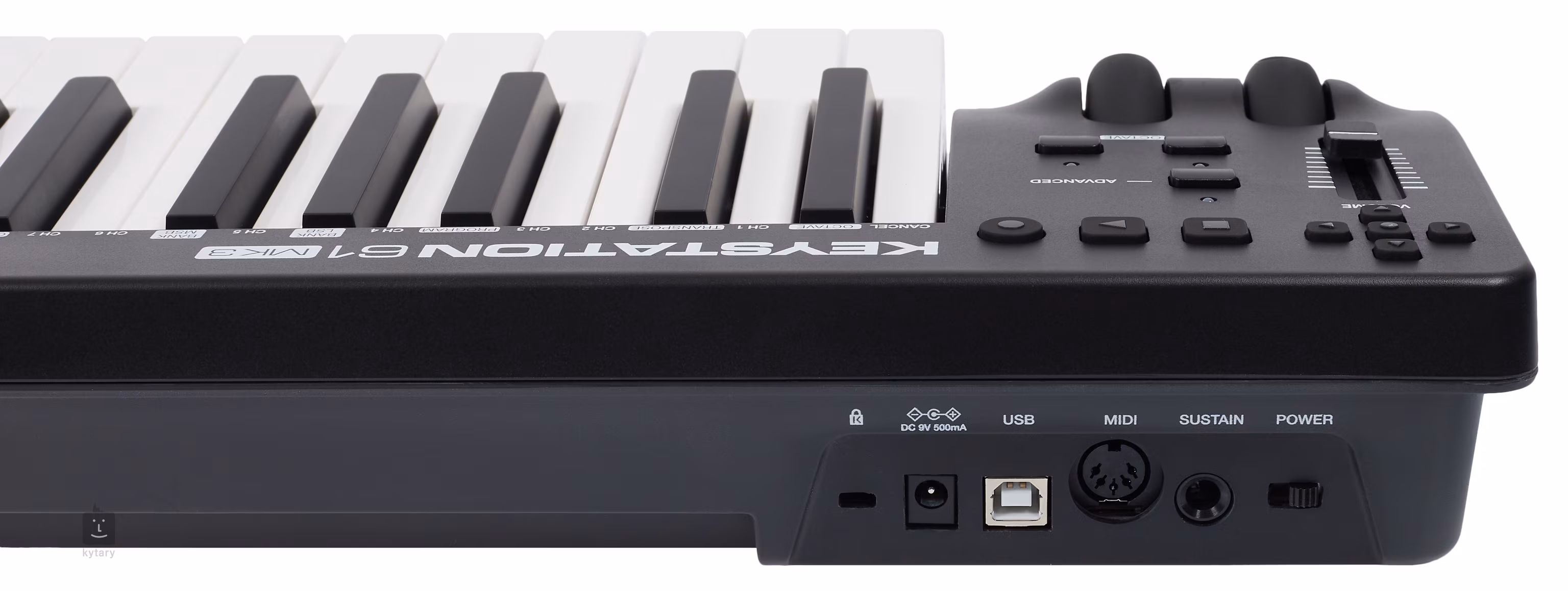 Okrem USB je na zadnom paneli aj výstup MIDI, takže Keystation 61 MK3 môžete používať na ovládanie syntetizátorov a iných periférnych zariadení. Klaviristi ocenia vstup pre sustain pedál.
