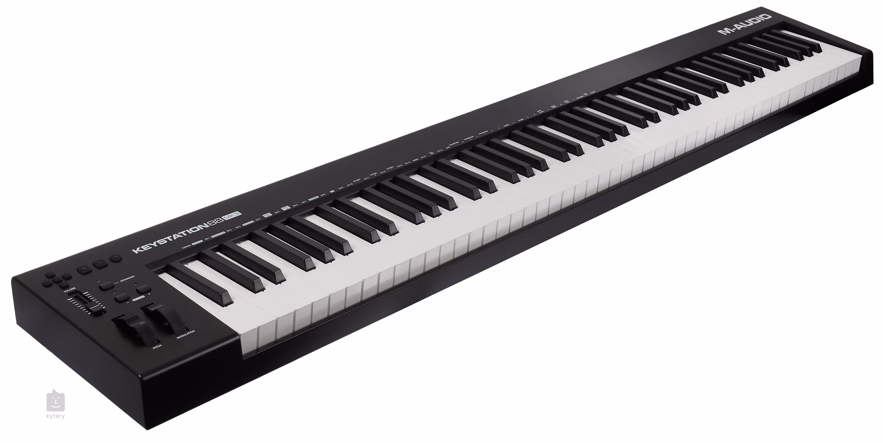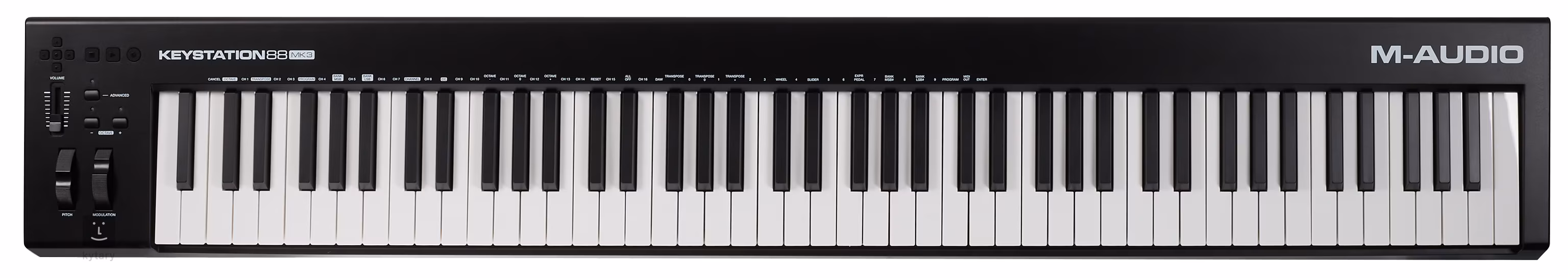 M-Audio Keystation 88 MK3 je praktický MIDI kontrolér, ktorý vám umožní naplno využívať potenciál softvérových nástrojov. K dispozícii je poloodľahčená klaviatúra s 88 klávesmi a dynamickou citlivosťou, pričom výšku a moduláciu zvuku môžete ovládať pomocou gombíkov na ľavej strane klaviatúry.