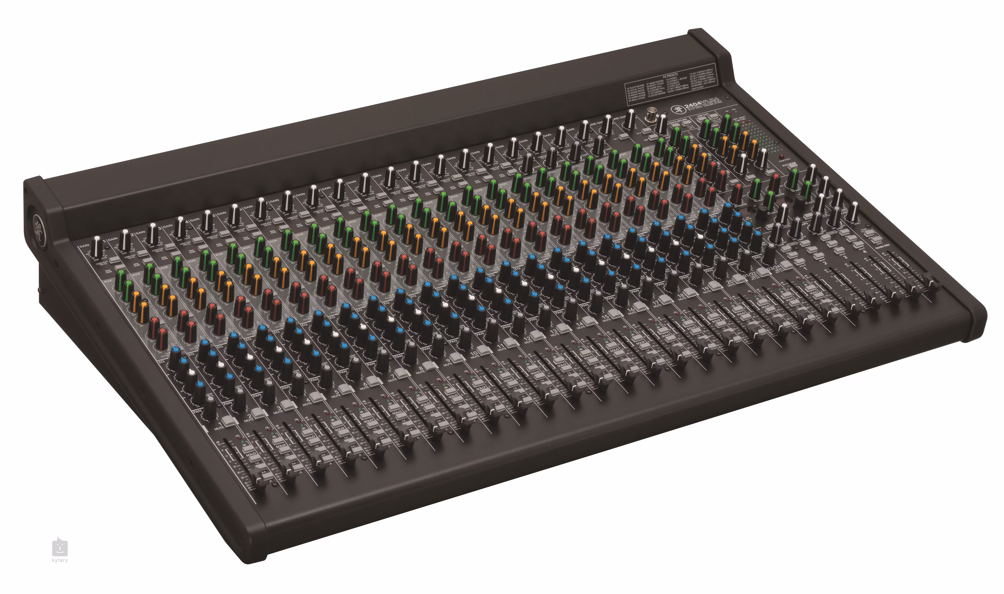 Konkrétne 2404-VLZ4 je kompaktný 24-kanálový mixážny pult, ktorý ponúka 20 linkových vstupov a 20 mikrofónových vstupov, pričom mikrofónové vstupy využívajú vysokokvalitné predzosilňovače Onyx, ktoré možno poznáte zo špičkových modelov spoločnosti Mackie. Tie ponúkajú až 60dB rozsah zosilnenia, čo vám umožní získať až 128,5 dB dynamického rozsahu. Poskytujú najvernejší zisk signálu na všetkých frekvenciách a minimálnu úroveň skreslenia. Samozrejme, ponúka aj fantómové napájanie pri použití kondenzátorových mikrofónov. S 2404-VLZ4 možno používať aj nástrojové vstupy, takže nebudete potrebovať žiadne DI boxy.
