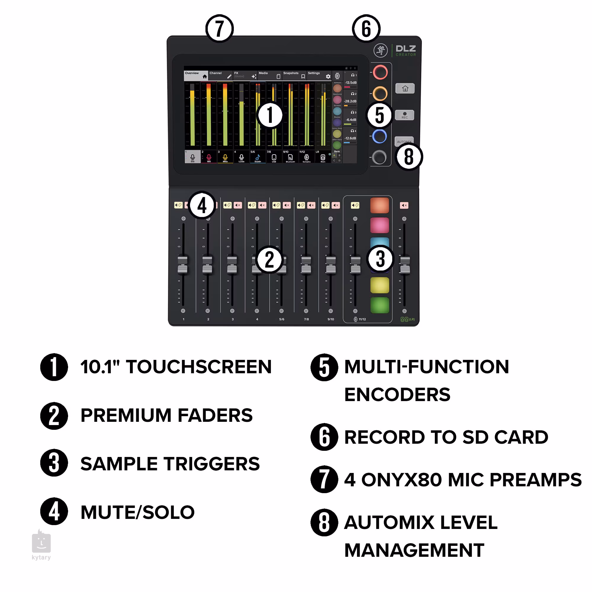 Profesionálny štúdiový mixážny pult pre váš stolový počítač DLZ Creator využíva desaťročia skúseností spoločnosti Mackie, aby sa pri vašej produkcii postaral o každý detail. Od predzosilňovačov Onyx80, vďaka ktorým aj mikrofóny s nižšou hlasitosťou znejú hlasno a čisto, až po prispôsobené slúchadlové mixy pre každého z vašich hostí - DLZ Creator vám poskytuje výhody profesionálneho štúdiového mixážneho pultu a navyše veľmi intuitívne ovládanie.