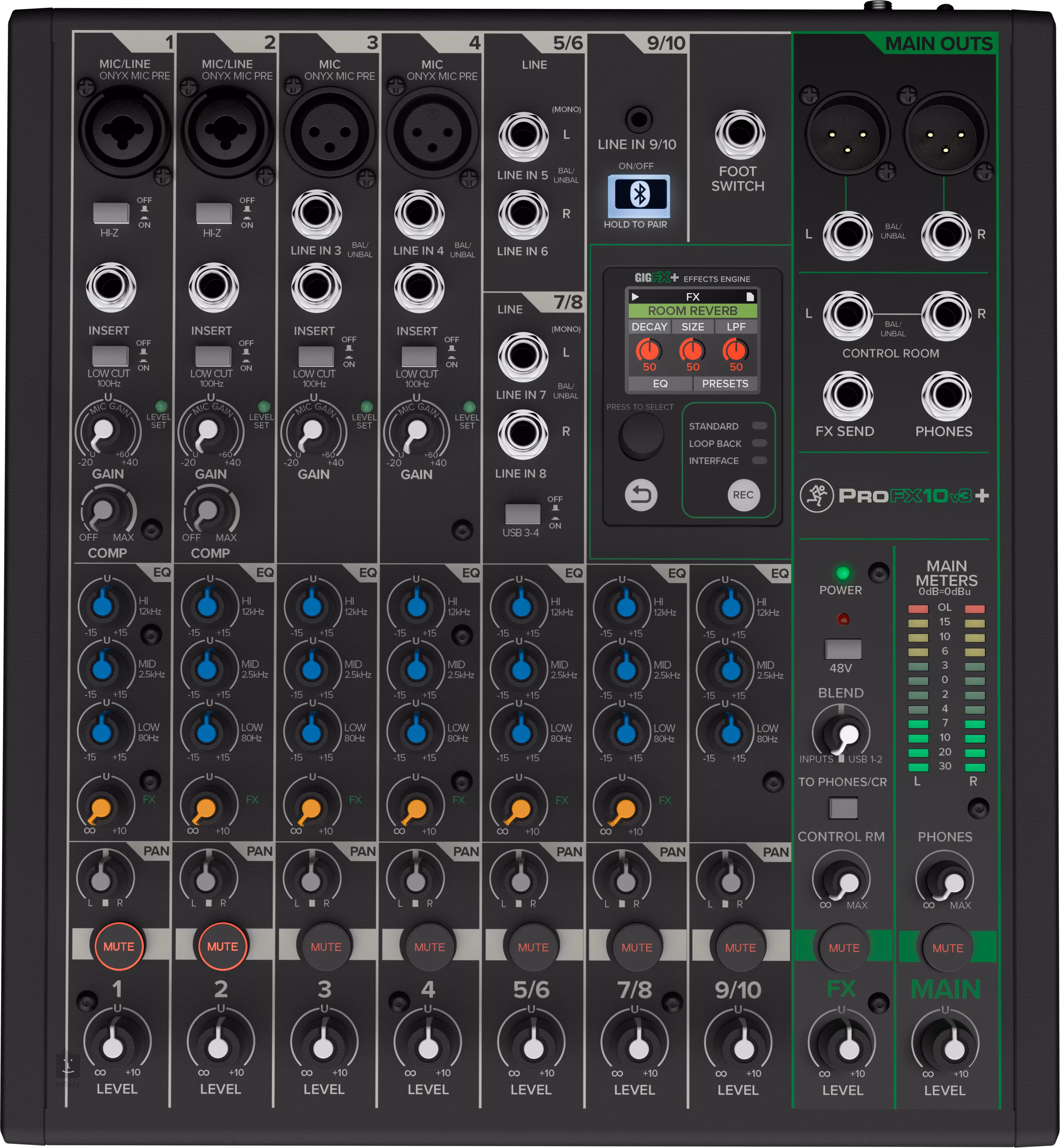 Mixpult pokračuje v tradícii, ktorú založila spoločnosť Mackie, a flexibilne sa prispôsobuje aktuálnym trendom a požiadavkám. Ponúka celkom desať kanálov, štyri mikrofónové vstupy s prémiovými predzosilňovačmi Onyx (so ziskom 60 dB), trojpásmový ekvalizér, vstavaný kompresor, desať insert vstupov a profesionálny efektový procesor GigFX+ s rozsiahlou škálou efektov od reverbov a delayov až po rôzne modulačné efekty. K dispozícii je aj obojsmerné rozhranie Bluetooth, ktoré umožňuje prehrávať externé zdroje zvuku, vystupovať s hudbou na pozadí, prenášať hudbu naživo online alebo prijímať hovory počas rozhlasového vysielania.