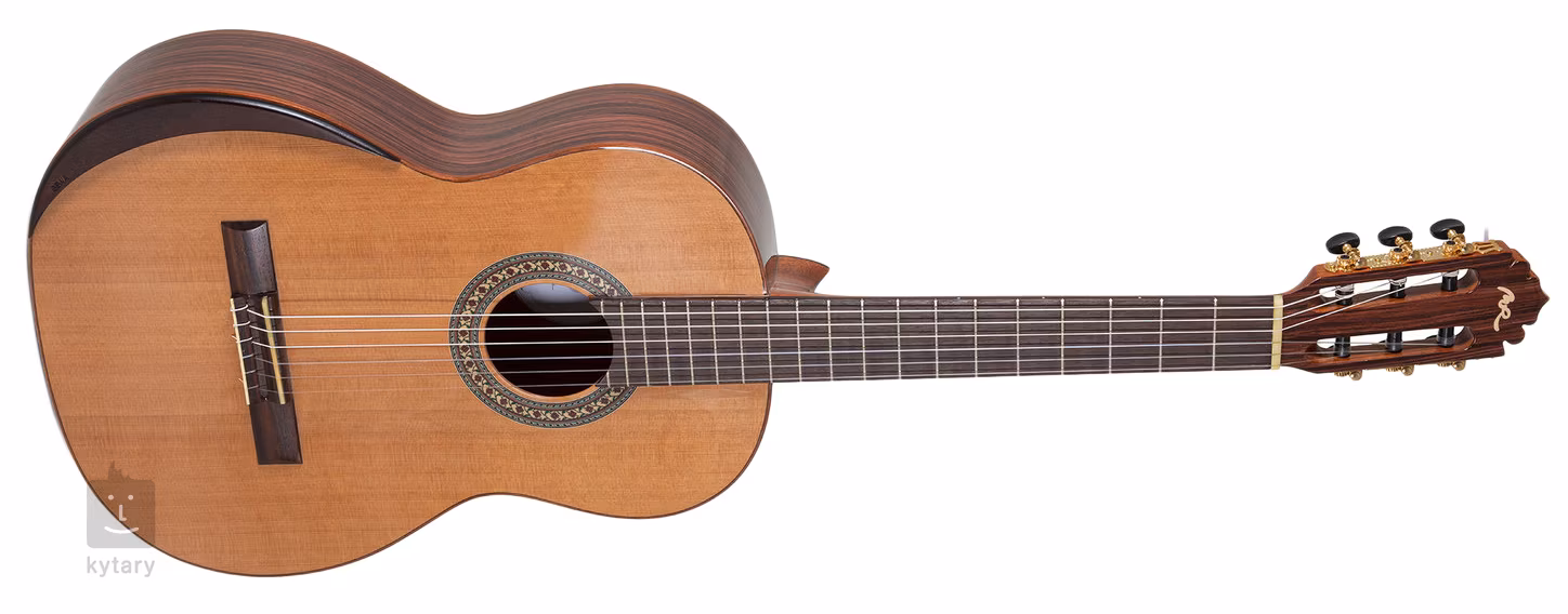Klasické gitary španielskej značky Manuel Rodriguez zo série ACADEMIA ponúkajú vysokú kvalitu spracovania a spojenie krku a tela typu „Spanish Heel“. Ide o zložitejšie konštrukčné riešenie, ale z hľadiska zvuku a stability krku je jedno z najlepších. Séria ACADEMIA AC60 4/4 je klasická gitara v plnej veľkosti 4/4. Predná časť nástroja je vyrobená z masívneho červeného cédru, zatiaľ čo zadná časť a boky sú vyrobené z laminovaného materiálu s povrchovou úpravou z palisandru. Gitara má tiež mahagónový krk, ovangkolový hmatník a kobylku, kostennú maticu, pozlátené ladiace mechaniky s lýrou a čiernymi kolíkmi, praktickú opierku ruky pre väčší komfort pri hraní a tradičné prvky v podobe drevenej intarzie na tele, ozdobnej rozety a ovangkolovej dyhy na hlave.