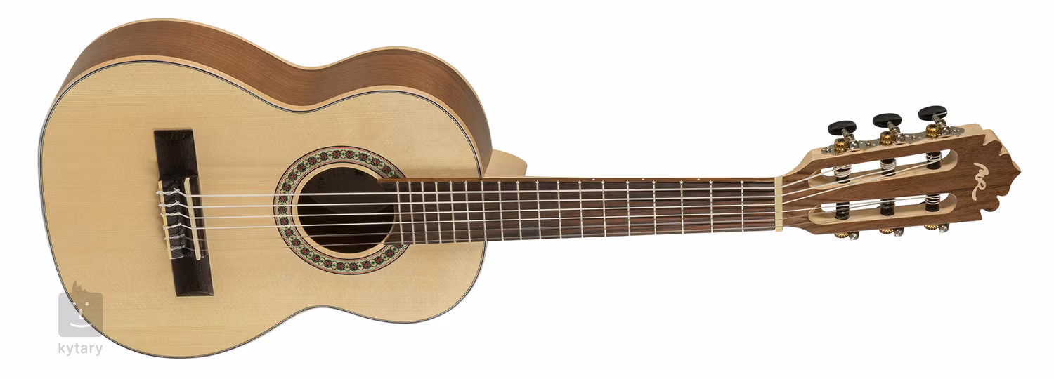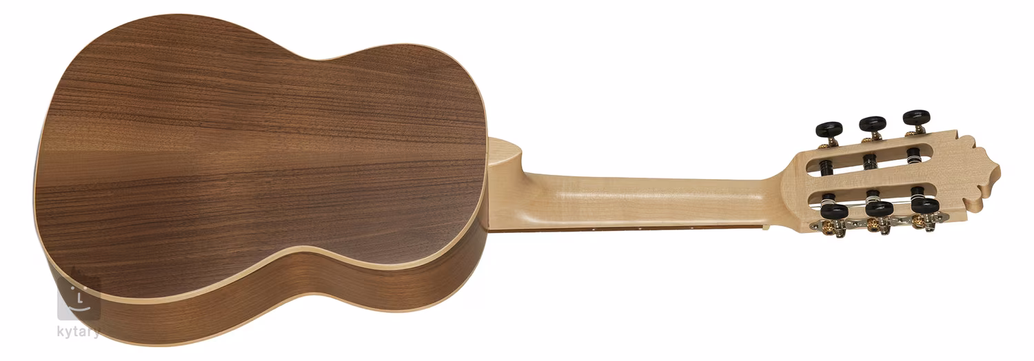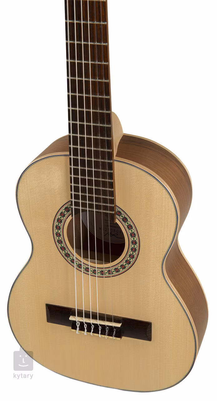 ECOLOGÍA Series E-44 1/4 size je detská klasická gitara vo veľkosti 1/4. Predná doska nástroja je vyrobená z masívneho smrekového dreva, zadná doska a luby sú z laminovaného orechového dreva. Gitara je ďalej vybavená javorovým krkom, akáciovým hmatníkom a kobylkou, nultým pražcom a hmatníkovou intarziou zo syntetického bonoidného materiálu s vysokým podielom skla (podobne ako materiál TusQ), ladiacimi mechanikami Van Gent holandskej výroby s čiernymi kolíkmi a tradičnými prvkami v podobe javorovej väzby tela, ozdobnej rozety a orechovej dyhy na hlavici.
