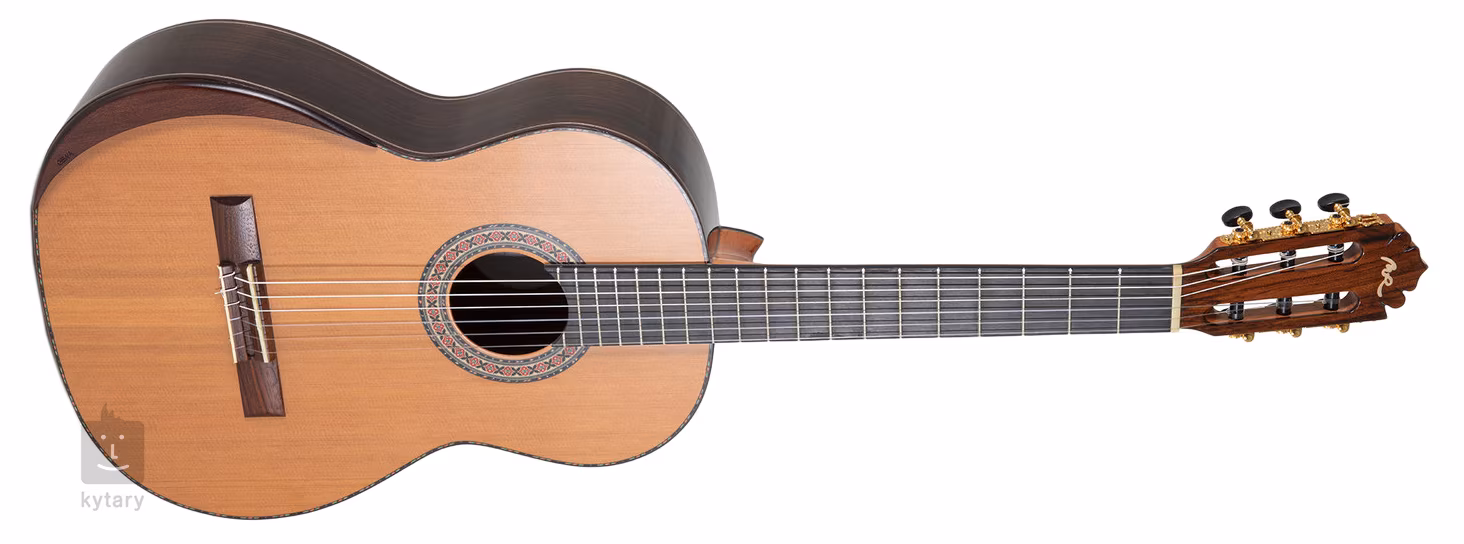 MAGISTRAL Series F ind. Rosewood all solid je klasická gitara v plnej 4/4 veľkosti. Predná doska je vyrobená z červeného cédra, zatiaľ čo zadná doska a luby sú z indického palisandru. Gitara ďalej ponúka cédrový krk s ebenovou výstuhou, ebenový hmatník, palisandrový hmatník s dvanástimi otvormi, kostený nultý pražec, pozlátenú lirovú mechaniku s čiernymi kolíkmi, praktickú opierku na ruku pre väčší komfort pri hre a tradičné prvky v podobe drevenej kobylky a ozdobnej rozety.