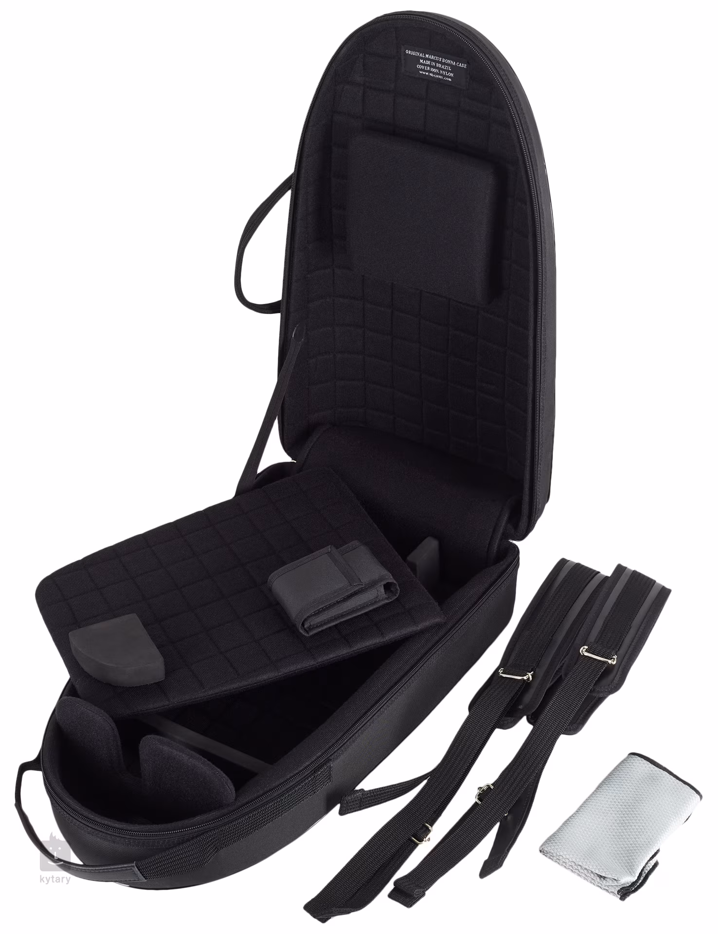 Do úzkeho vrecka na zips na zadnej strane batohu/kufra sa dajú uložiť noty a iné drobné príslušenstvo. Na manipuláciu s kufrom možno použiť rukoväte alebo odnímateľné ramenné popruhy. Súčasťou balenia je trojdielne puzdro.