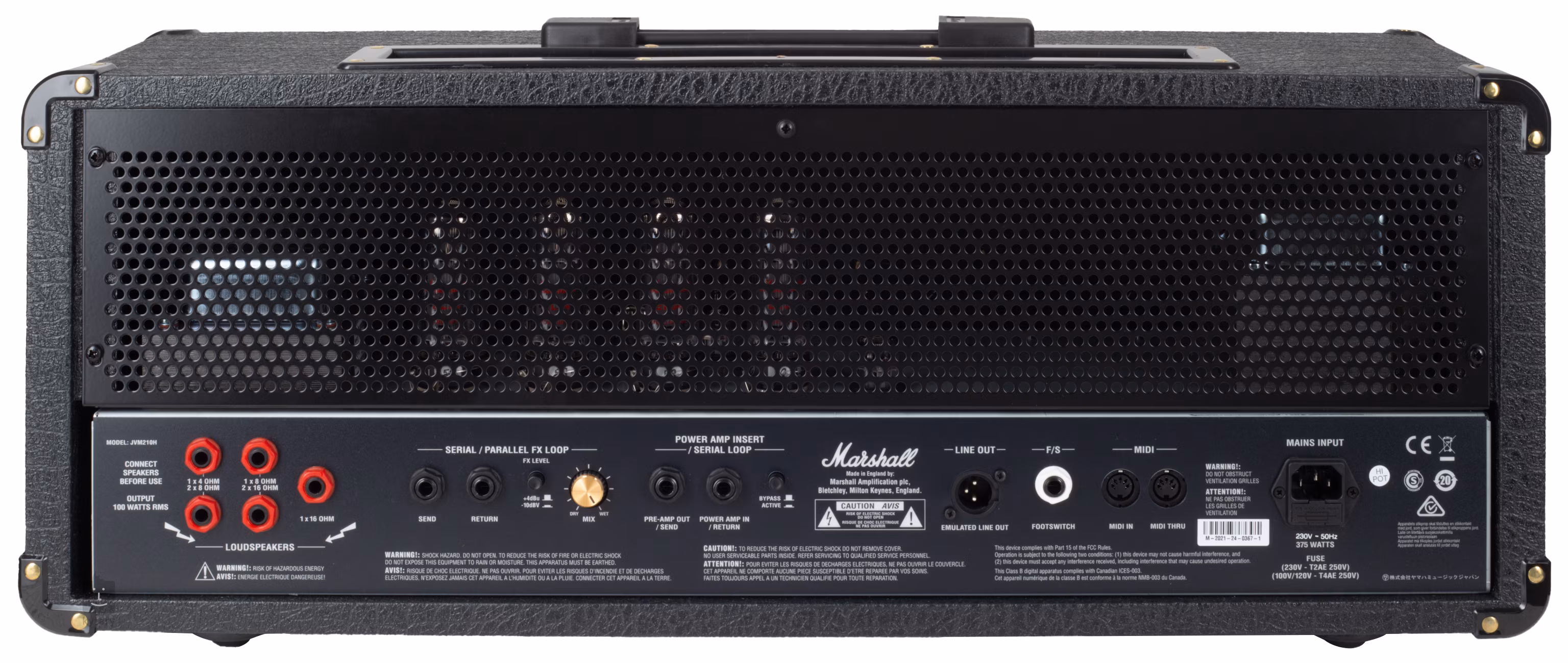 Model 210 je jedným z jednoduchších modelov série JVM, ale aj tak je viac než dobrou voľbou aj pre tých najnáročnejších gitaristov, ktorí potrebujú byť počuteľní v skúšobniach alebo na klubových pódiách. Je to celolampový zosilňovač s piatimi lampami ECC83 v predzosilňovači a štyrmi lampami EL34 v koncovom zosilňovači, ktorý produkuje výkon až 100 W. Zosilňovač je možné pripojiť k reproduktorovým skrinám s celkovým zaťažením 16, 8 alebo 4 ohmy, čo vám umožňuje zostaviť si stack, ktorý vyhovuje vašim potrebám.