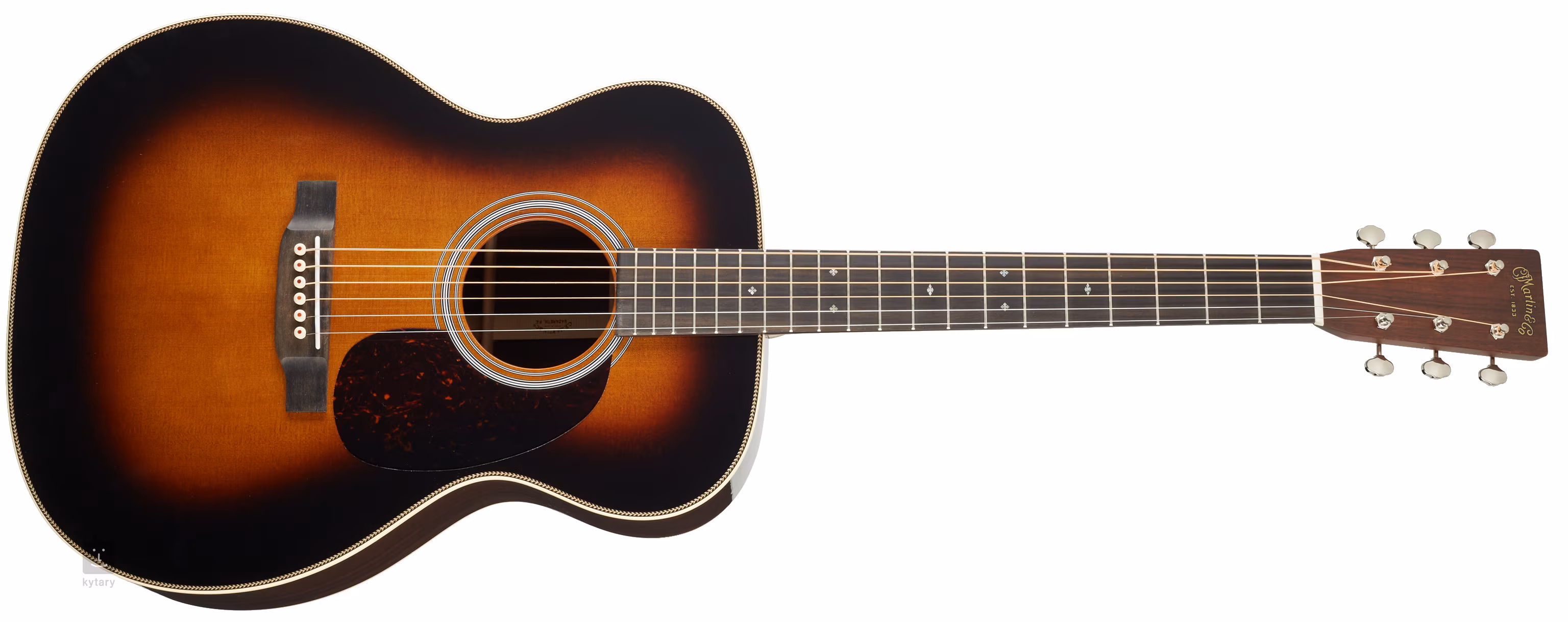 Martin 000-28 1935 Sunburst je celomasívna akustická gitara typu 000 zo série Standard, ktorá spája nástroje najvyššej kvality v klasickom dizajne Martin. Vďaka menšej veľkosti tela (v porovnaní s modelmi Dreadnought) a kratšej menzúre je nástroj univerzálne vhodný na hru prstami a trsátkom, pričom poskytuje maximálny komfort pre hudobníkov s menšími prstami alebo jemnejšou postavou. Gitara sa dodáva v prepravnom puzdre, takže je okamžite pripravená na naloženie do auta/dodávky na dlhé alebo krátke cesty za vašimi hudobnými snami.