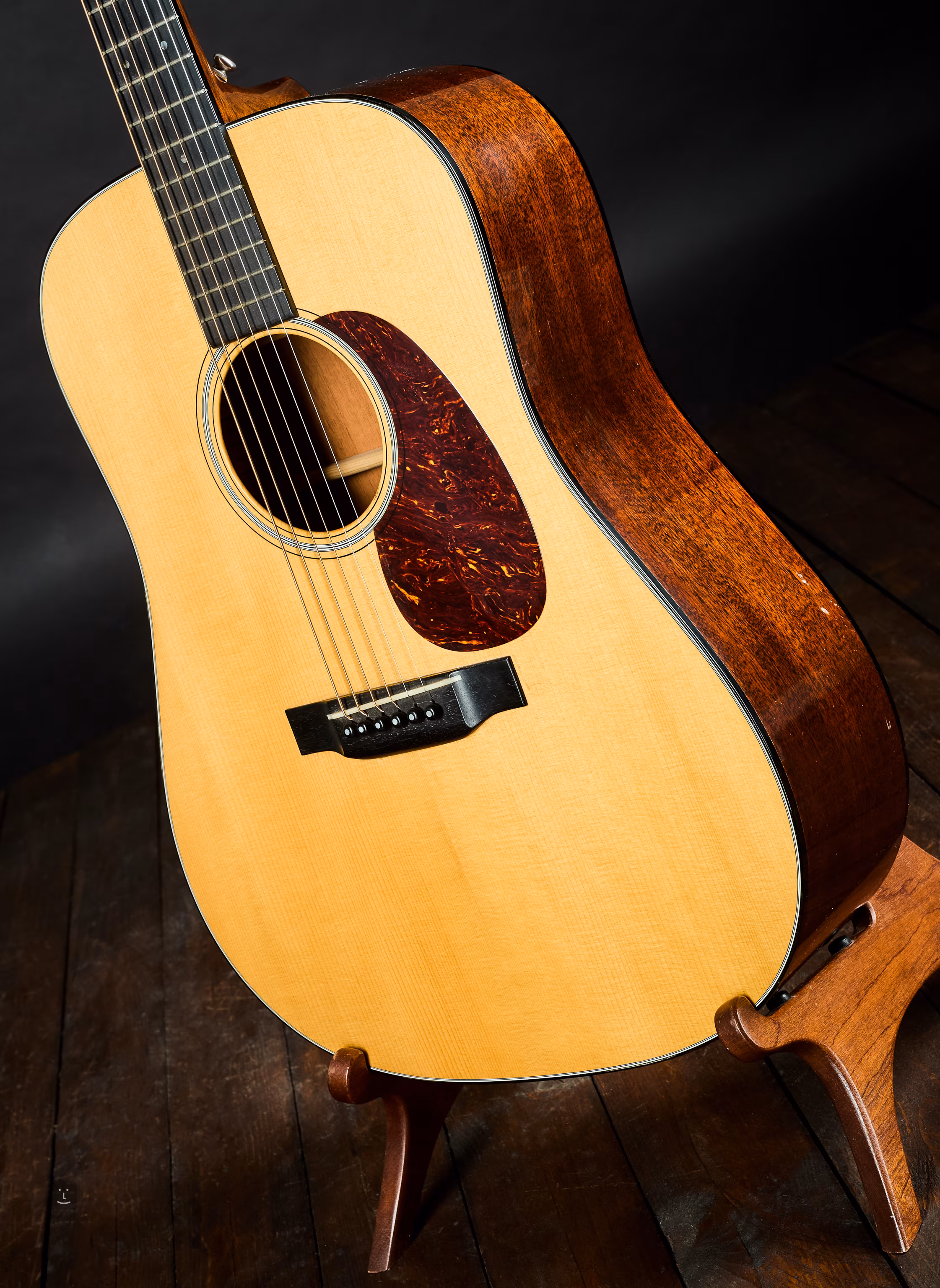 Akustická kytara Martin D-18 Authentic 1939 je vyrobená ve stejném designu a shodnými výrobními postupy jako ceněné modely ze 30. let minulého století, tzv. zlaté éry značky Martin. V krku není nastavitelná, nýbrž vintage pevná výztuha typu T-Bar.